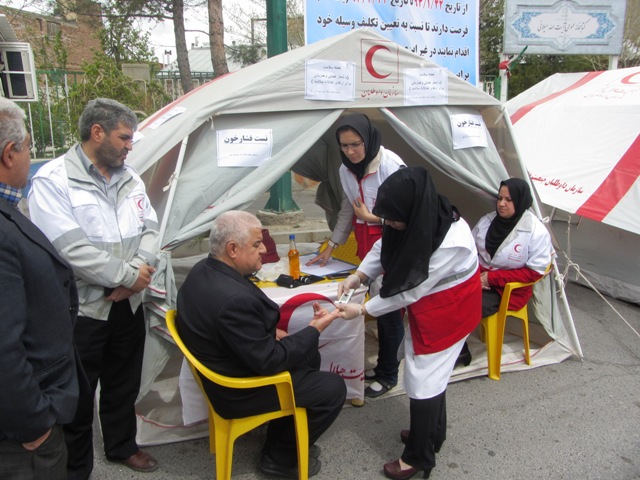 بنابراین گزارش:همچنین در سومین روز از هفته سلامت داوطلبان جمعیت هلال احمر شهرستان اسکوبا برپایی چادر در مرکز شهر "فلکه امام (ره) " از کلیه مردم با شعار" همدلی وهمزبانی" برای ارتقاء عادلانه سلامت تست قند خون وفشارخون بعمل آوردند .