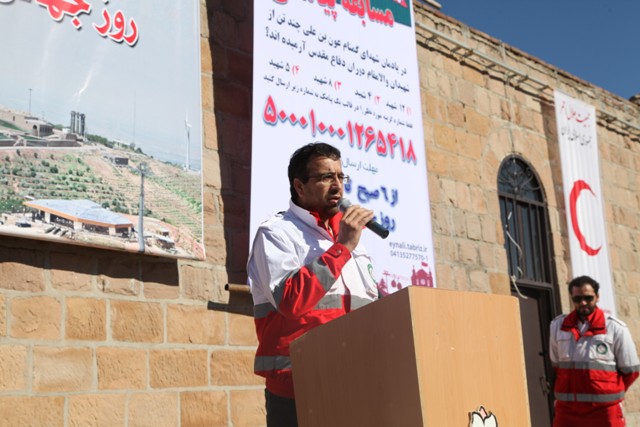 به گزارش روابط عمومی جمعیت هلال احمر استان آذربایجان شرقی،صبح امروزجمعه  18 اردیبهشت  با حضوردکتر سعید شبستری  معاون سیاسی امنیتی استانداری آذربایجان شرقی و هزاران نفر از مردم کلانشهر تبریز،روز جهانی صلیب سرخ و هلال احمربا شعار "انسان مهربان،دنیای آرام" در ارتفاعات عون بن علی تبریز گرامی داشته شد.