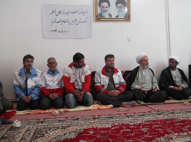 علی مجیدی رئیس جمعیت هلال احمرشهرستان هریس  در این دیدار ،گزارشی از فعالیتهای این جمعیت در یک سال گذشته ارائه دادند و سپس  حجت الاسلام والمسلمین احمدی امام جمعه هریس ضمن تقدیر از زحمات شبانه روزی پرسنل و امدادگران داوطلب این جمعیت، فعالیت و خدمت در این جمعیت را مصداق تحقق اخلاق عملی قلمداد نمودند و به عضو گیری از جوانان مخصوصا از قشر دانشجویان و ترویج حس انساندوستانه در بین اقشار جامعه تاکید نمود.