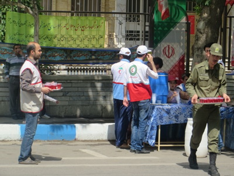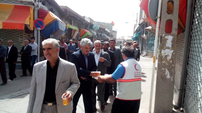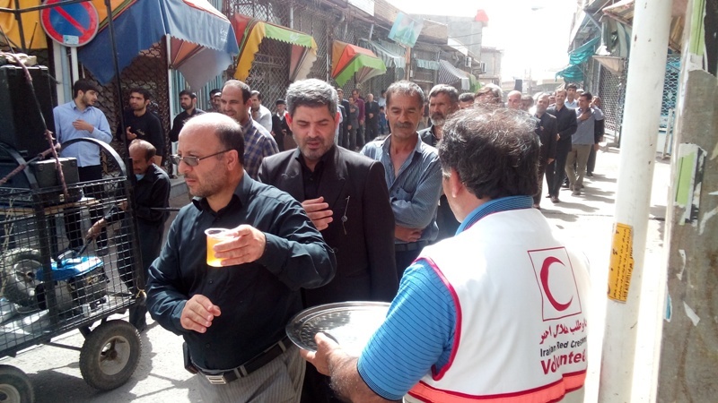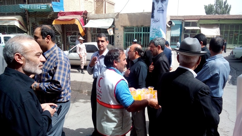 داوطلبان و جوانان جمعیت هلال احمر شهرهای مرند و ملکان با برپایی ایستگاههای صلواتی از عزاداران امام خمینی پذیرایی نمودند