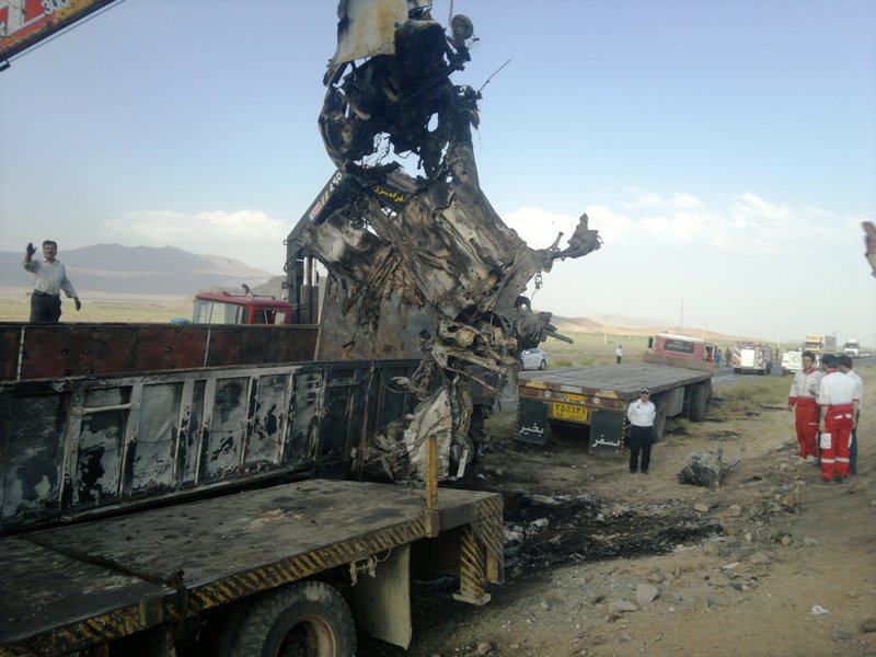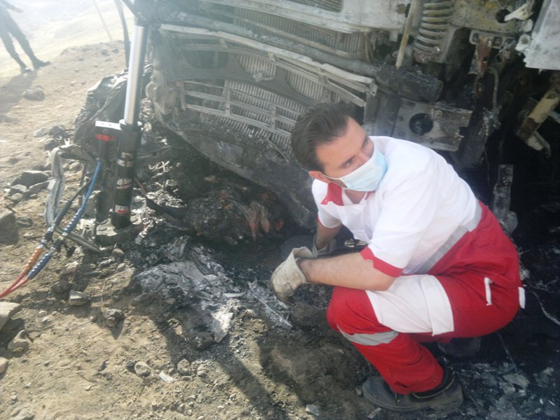 این گزارش می افزاید، شدت برخورد بحدی بود که خودروی سواری بعلت سرعت زیاد بعد از برخورد با کامیون به زیر کامیون میرود و دچار آتش سوزی شده  که هر دو سرنشین آن یک نفر آقا و یکنفر خانم در آتش میسوزند و آتش سوزی توسط آتشنشانی مرند خاموش میشود و اجساد قربانیان  توسط نجاتگران پایگاه امداد جاده ای شهید رحمت الله اوهانی مرندبا استفاده از ست هیدرولیک از میان آهن پاره ها از زیر کامیون رها سازی  و بیرون کشیده و  تحویل مقامات قضائی میشود.ضمناً راننده و سرنشین کامیون در این حادثه دچار صدمات جزئی شده بودند.