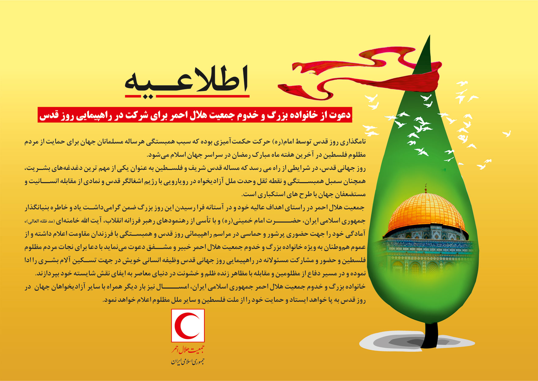 فراخوان جمعیت هلال احمر برای شرکت در راهپیمایی روز قدس