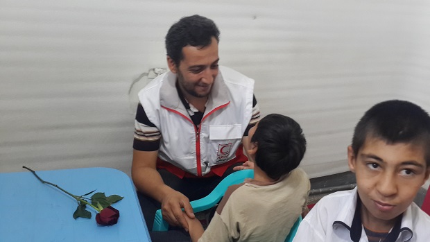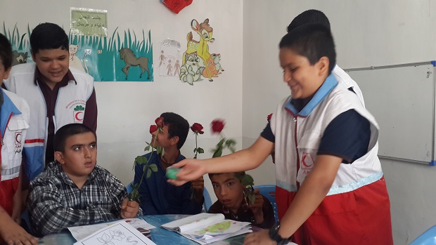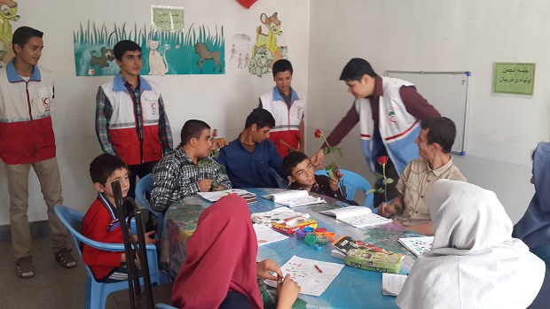 این گزارش می افزاید ، غنچه های هلال با ایجاد فضای کودک وایستگاه نقاشی وتقدیم گل به کودکان معلول بهزیستی صحنه های بدیعی را خلق کرده و شادیهای خودرا با کودکان معصوم ومعلول  بهزیستی تقسیم کردند.