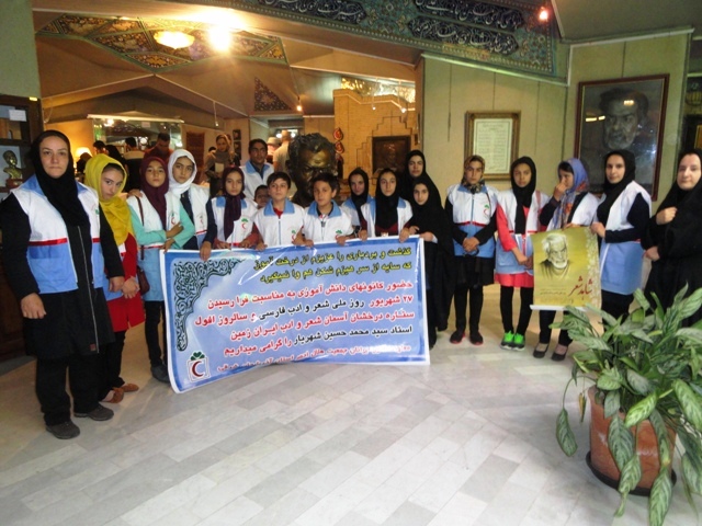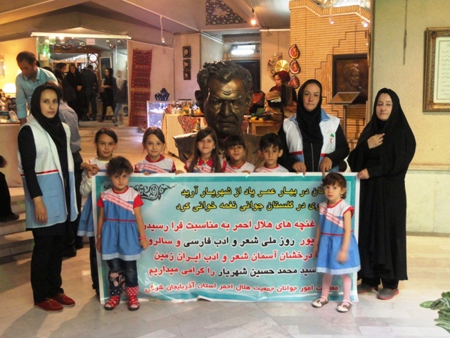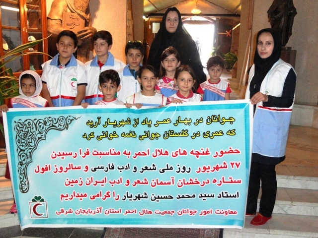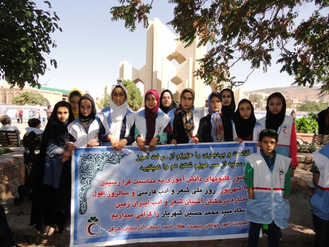 همزمان با روز ملی شعر و ادب فارسی و روز بزرگداشت استاد سید محمدحسین شهریار شاعر بزرگ معاصرایران ، اعضای  کانونهای دانش آموزی و غنچه های هلال معاونت امور جوانان جمعیت هلال احمر استان اذربایجان شرقی با حضور در مقبره الشعرا ومزار استاد شهریار با نثار شاخه گل به مقام شامخ ادبی این شاعر بزرگ ادای احترام کردند