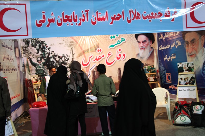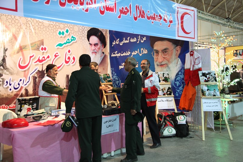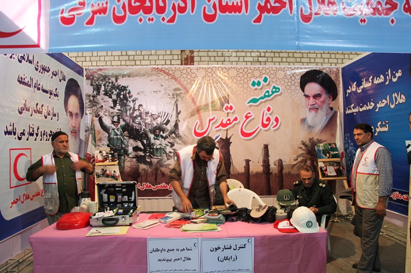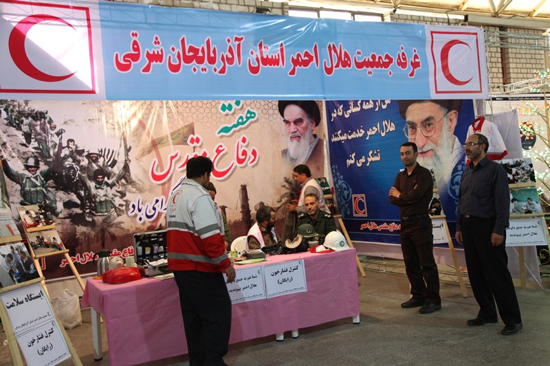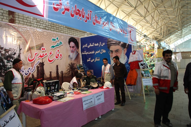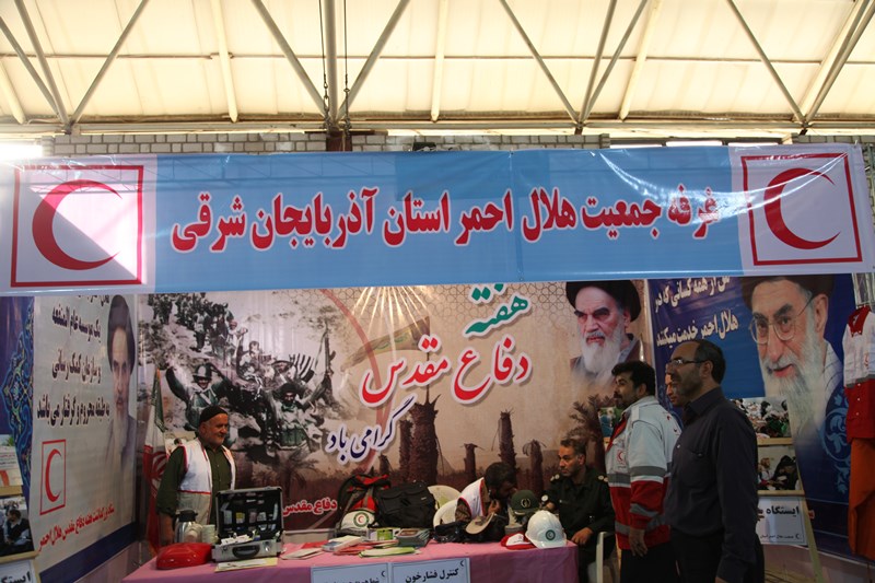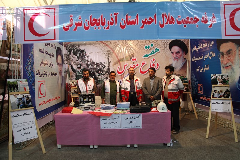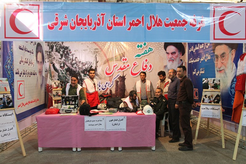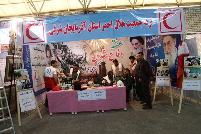 جمعیت هلال احمر استان آذربایجان شرقی با برپایی غرفه در نمایشگاه هفته دفاع مقدس  اقدام به ارائه خدمات سلامتی و آموزشی نموده است