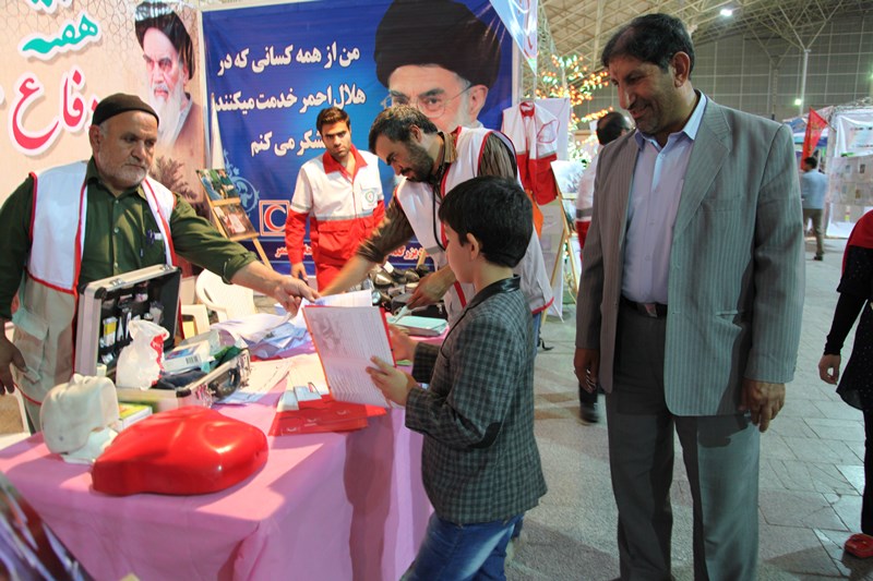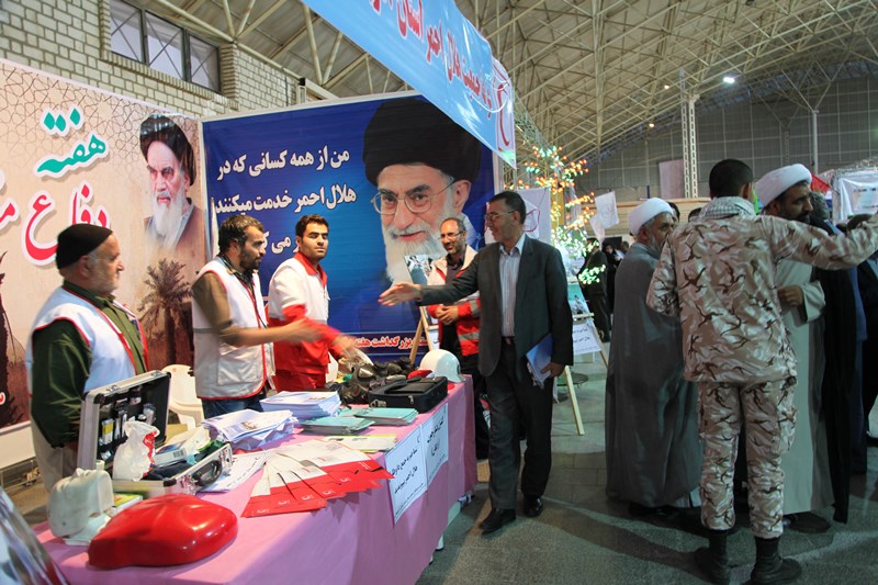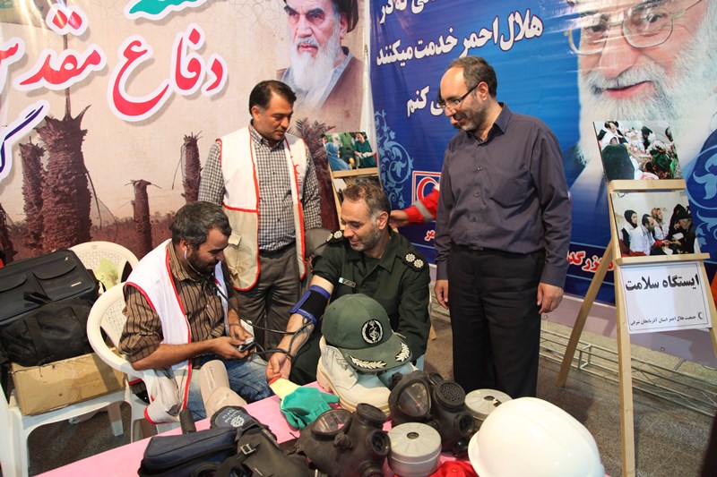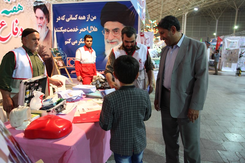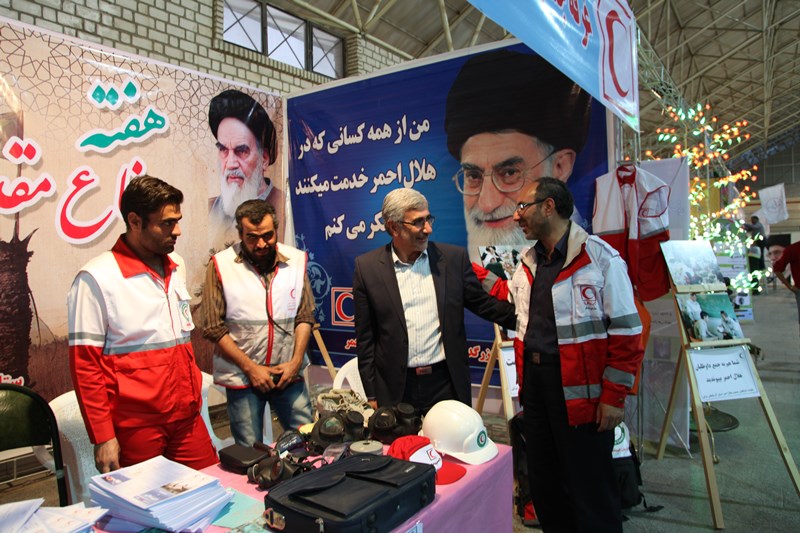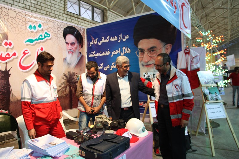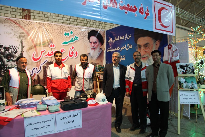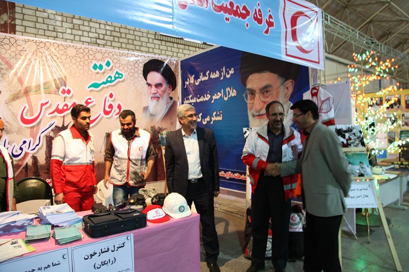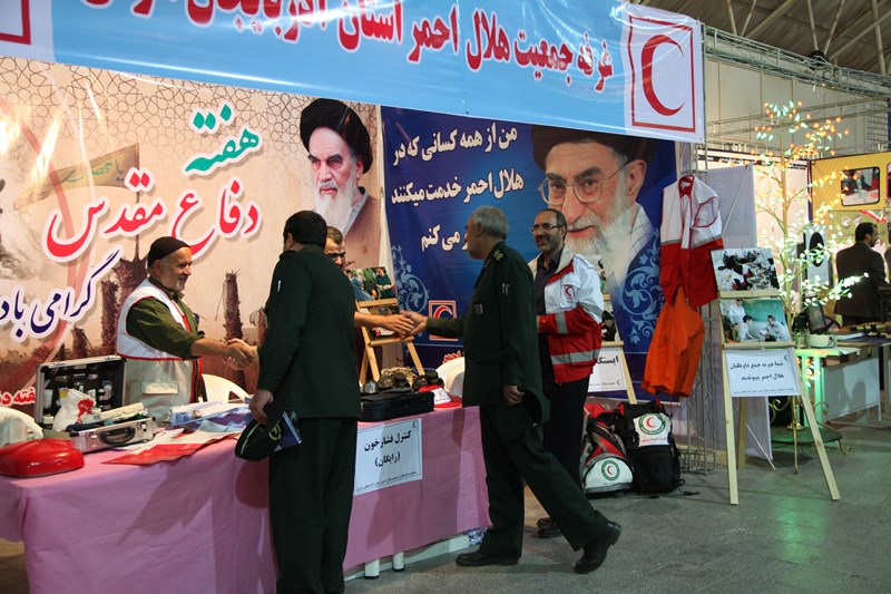 جمعیت هلال احمر استان آذربایجان شرقی با برپایی غرفه در نمایشگاه هفته دفاع مقدس  اقدام به ارائه خدمات سلامتی و آموزشی نموده است