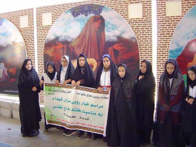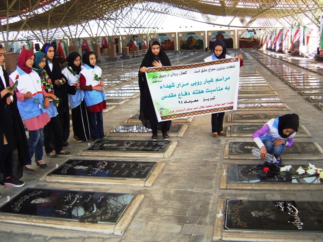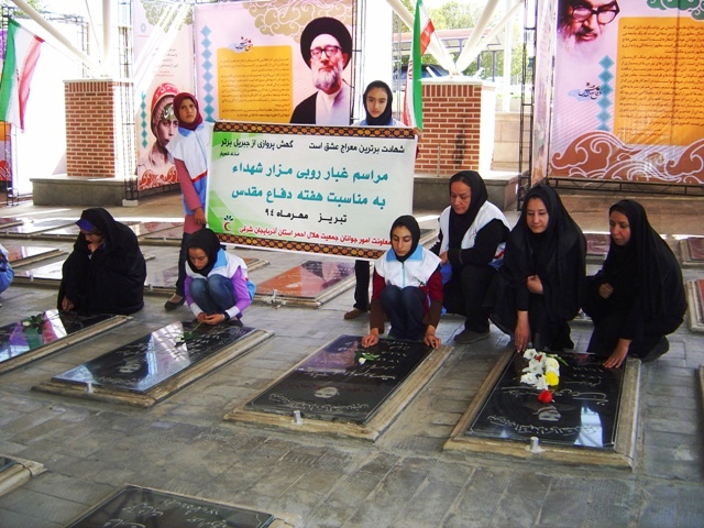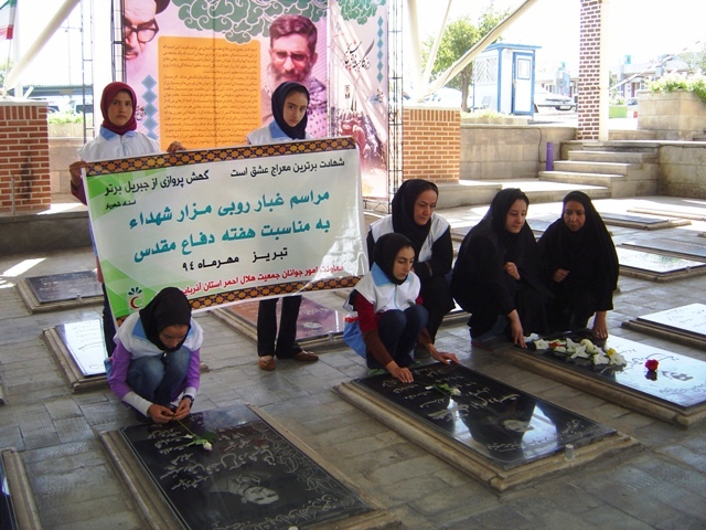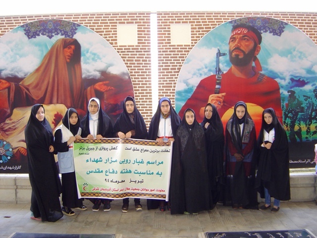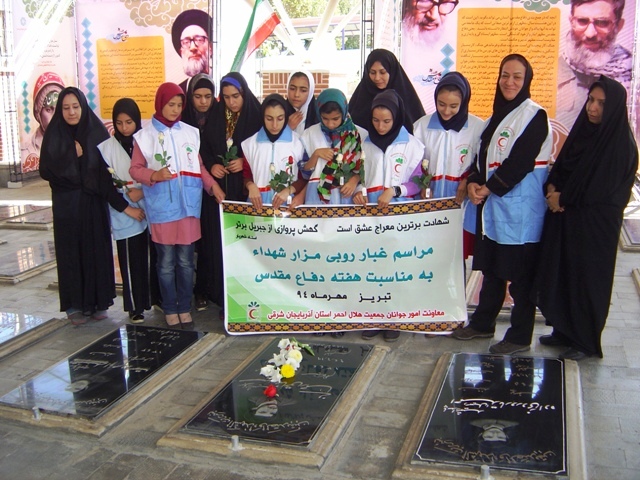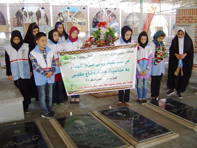 بمناسبت هفته دفاع مقدس مراسم غبار روبی مزار شهداء توسط کانونهای دانش اموزی معاونت جوانان جمعیت هلال احمر استان در تبریز برگزار شد