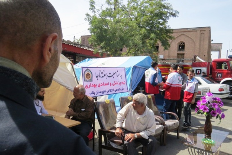 این گزارش می افزاید: همزمان با دهه ولایت و امامت در روبروی مصلا ی بناب دو ایستگاه جداگانه برای خواهران و برادران بر پا گردید وبرای مردم و نمازگزاران خدمات رایگان کنترل فشار خون و تست قند خون و راهنماییهای دیگر در کنترل سلامت توسط عوامل درمانی و امدادی مستقر در چادرها ارائه گردید.