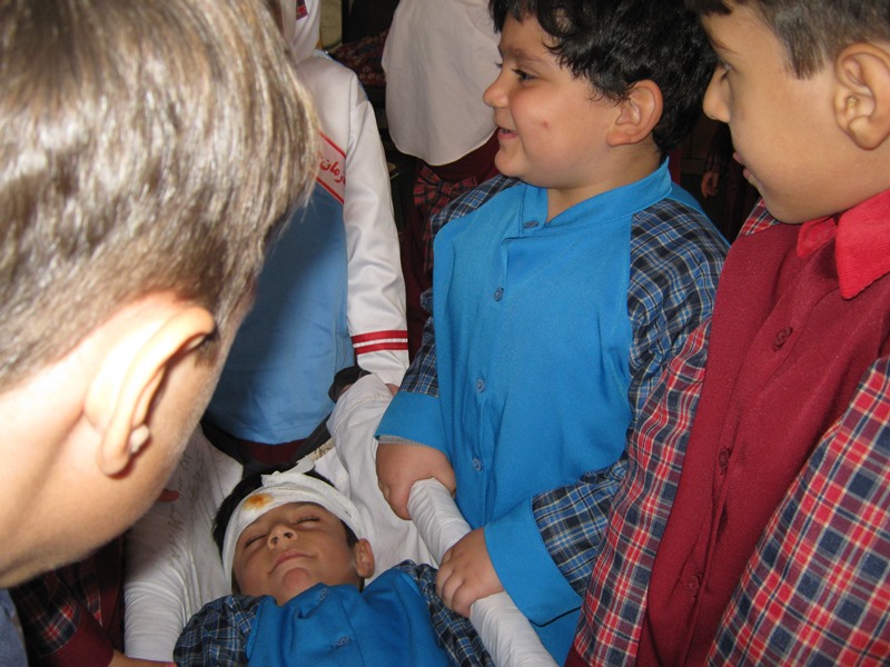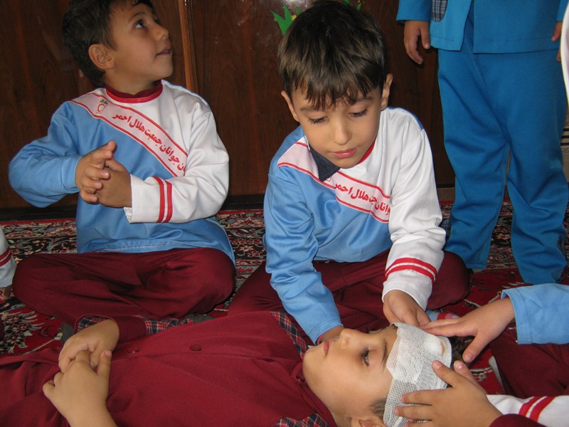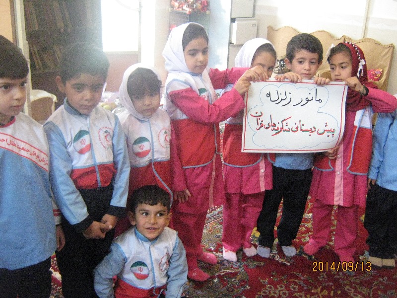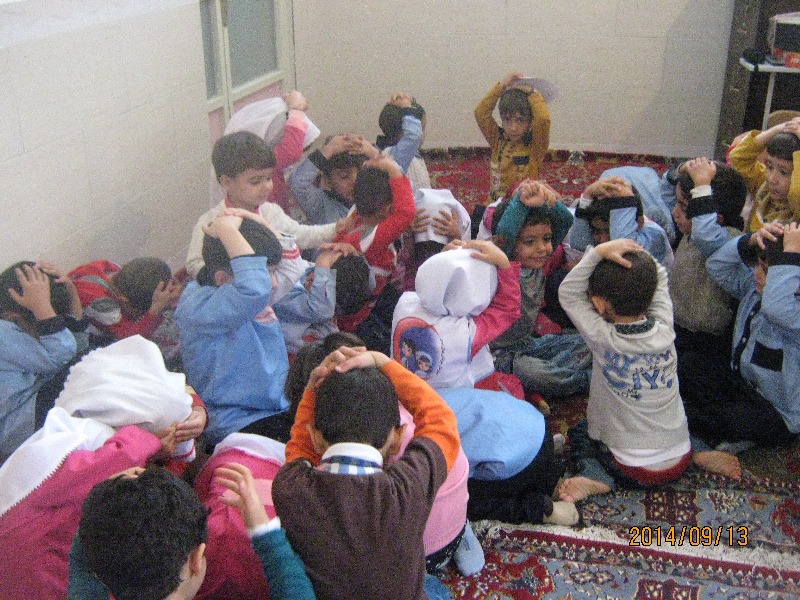 شرکت اعضای غنچه های هلال مهد کودک های جمعیت هلال احمر شهرستان ملکان در مانور فرضی زلزله