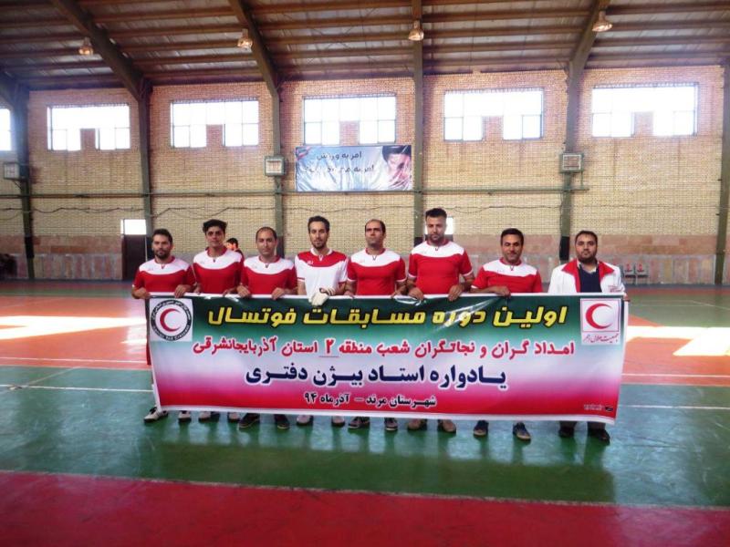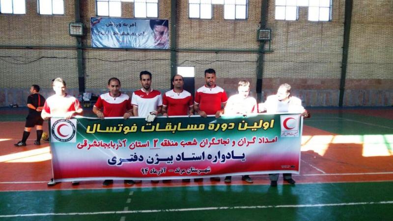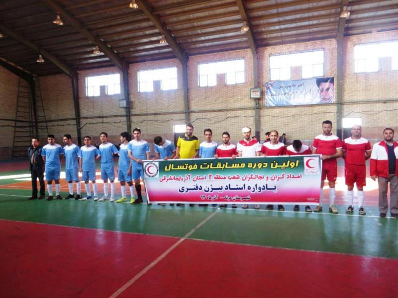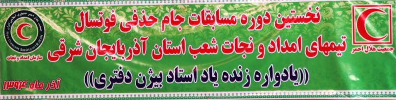 به گزارش روابط عمومی جمعیت هلال احمر استان آذربایجان شرقی ،بمنظور گرامیداشت یاد وخاطره شادروان بیژن دفتری از پیشکسوتان عرصه امداد ونجات در کشور یک دوره مسابقه فوتسال بین 14 تیم ازشهرای استان برگزارو تیمهای خدا آفرین،تبریز و بستان آباد به ترتیب رتبه اول تا سوم را بخود اختصاص دادند.