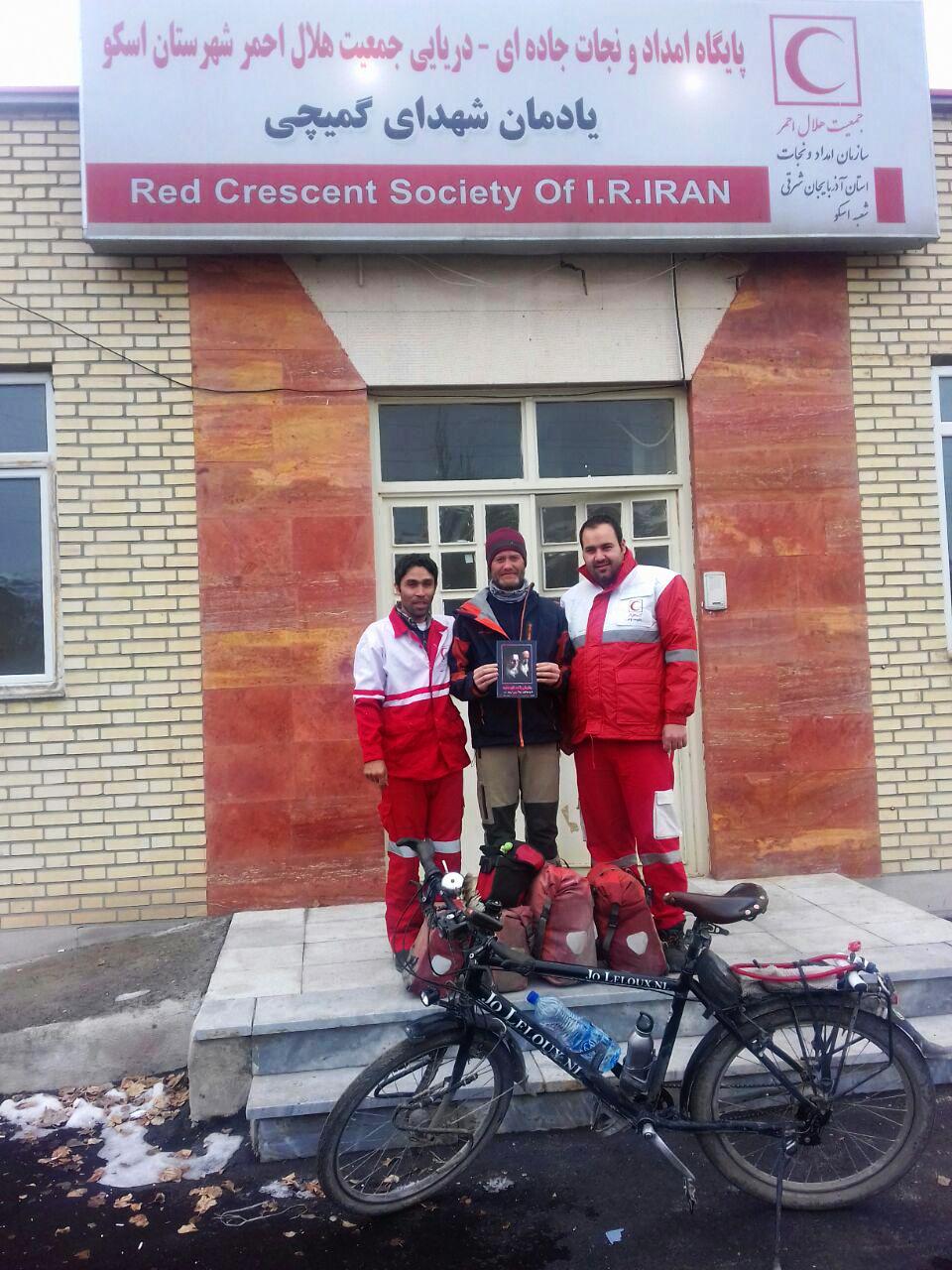 این گزارش می افزاید : دوچرخه سوارهلندی صبح امروز بعد از مساعد شدن وضعیت جوی ادامه مسیر داد  گفتنی است توریست فوق از هلند عازم تایلند بوده  و از آنجا به ایران و از ایران عازم ترکیه بود که در هفتاد کیلومتری تبریز ارومیه مهمان نجاتگران و امدادگران هلال احمر اسکو شده و شب را در پایگاه امدادو نجات شهدای گمیچی جمعیت هلال احمراسکو سپری کرد.