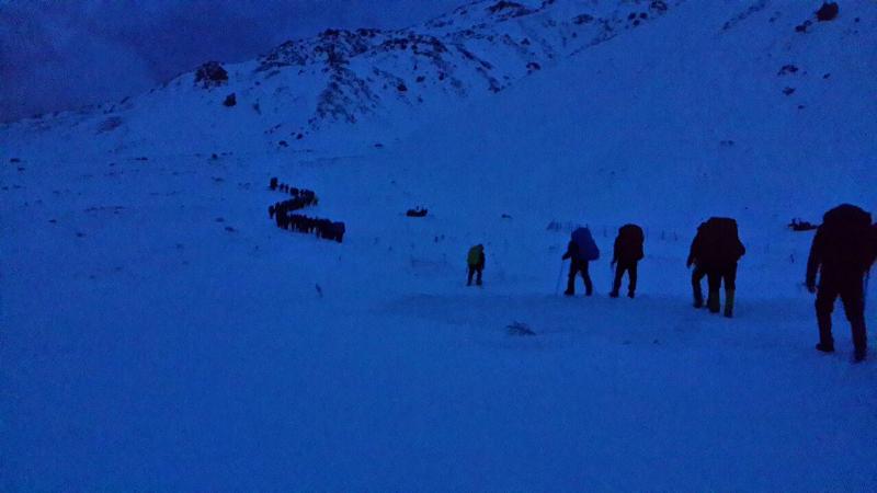 بنابراین گزارش ،نجاتگران قبل از صعود اقدام به برپایی چادرها در هوای بسیار سرد و برفی کوهستان میشو نمودند .