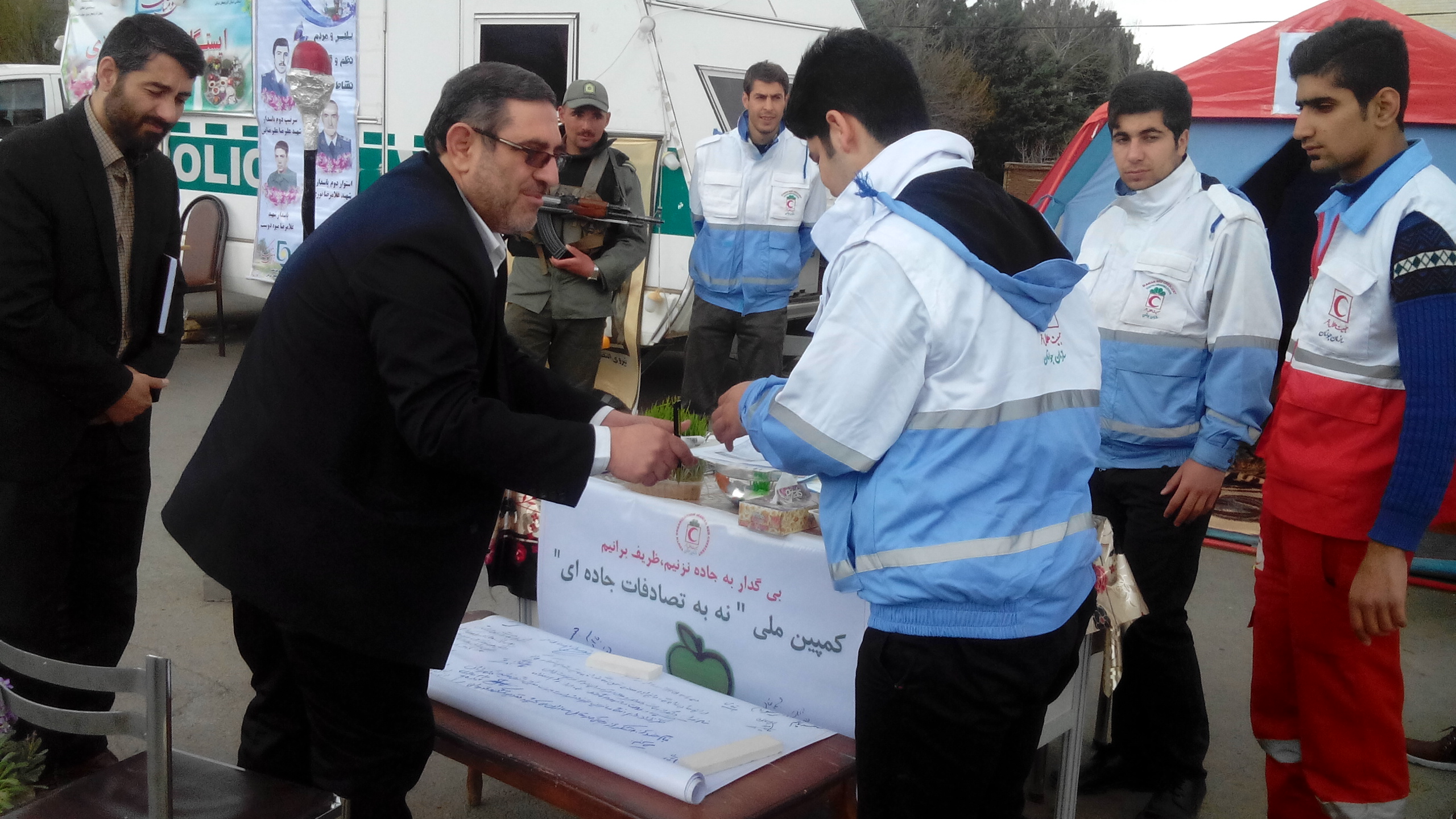 بابایی فرماندار کلیبر ضمن تجلیل از خدمات جمعیت هلال احمر با امضاء طومار به کمپین نه به تصادفات جاده ای پیوست .