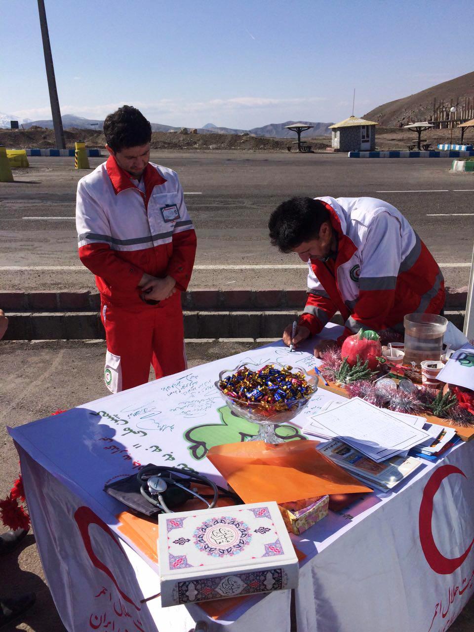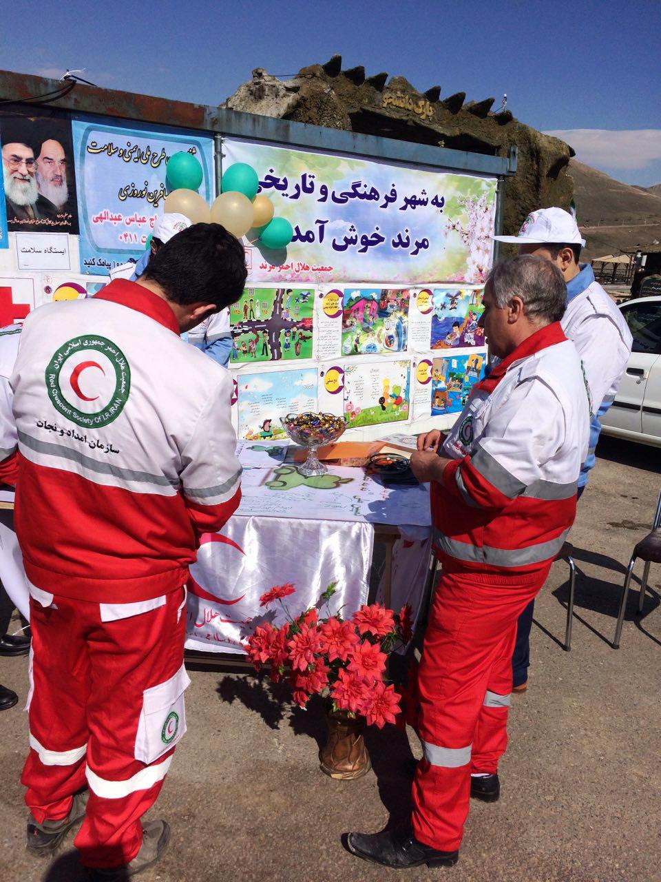 همچنین اعضاءجوانان هلال احمر شهرستان کلیبر با استقبال از مسافرین نوروزی به ارائه خدمات از جمله دادن نقشه های شهرستان ،گرفتن فشار و تست قند خون و راهنمایی کودکان به فضای دوستدار کودک پرداختند .