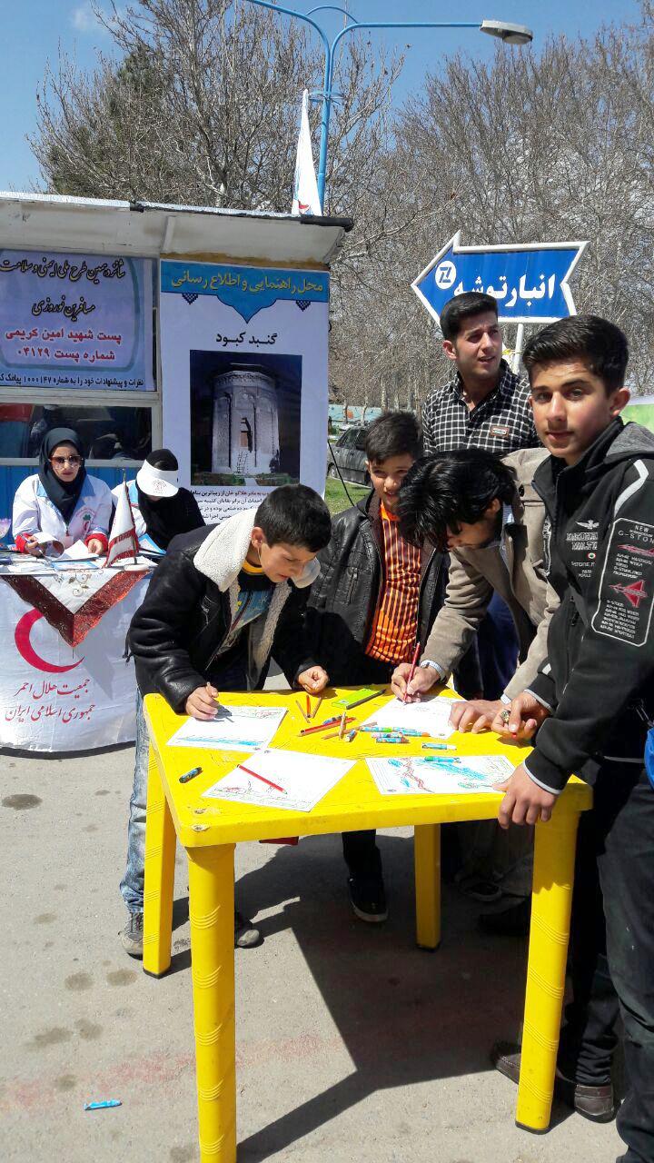 چادرها وکانکس های آبی رنگ جمعیت هلال احمر با پرچم های بر افراشته انچنان از دور دست بین پست های دیگر سازمان ها خودنمائی میکرد که خودروهای در حال گذر وحتی توریست ها را به سوی خود جلب میکرد که در این میان حضور توریست های چینی چشمگیر وعلاقه بیشتری برای گرفتن عکس نشان می دادند.