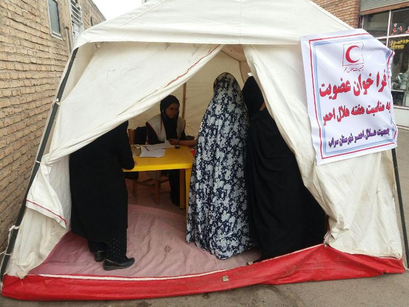 برپایی ایستگاه سلامت و عضو گیری در محل اقامه نماز جمعه در سراب