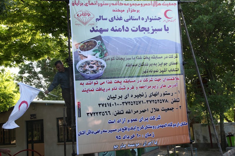 به گزارش روابط عمومی جمعیت هلال احمر استان آذربایجان شرقی ،بمنظور حمایت از سلامت زندگی انسانها و افزایش نشاط، شادابی و سلامت جامعه وترویج فرهنگ استفاده از غذاهای سالم و سنتی ،نخستین جشنواره استانی غذای سالم توسط جمعیت هلال احمر استان و شهرستان مراغه با مشارکت مجموعه رستورانها ی برلیان در محل اردوگاه المهدي کرج آباد شهرستان مراغه برگزار گردید.