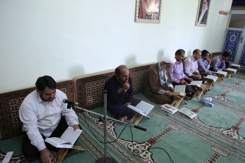 .شایان ذکر است جلسات روزانه هر روز با تلاوت قرآن کریم و تفسیر موضوعی آن از ساعت 12:30 در نماز خانه طبقه چهارم شروع و با اقامه نماز ظهر و عصر پایان می پذیرد.
