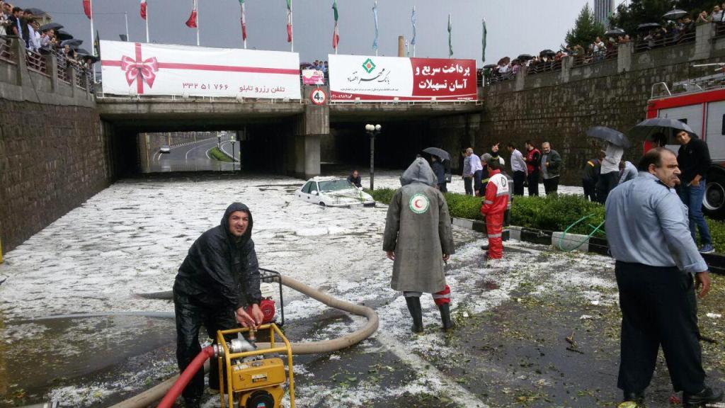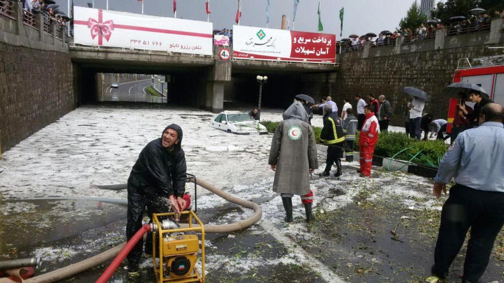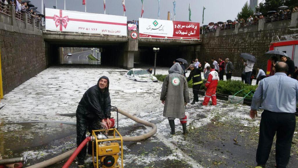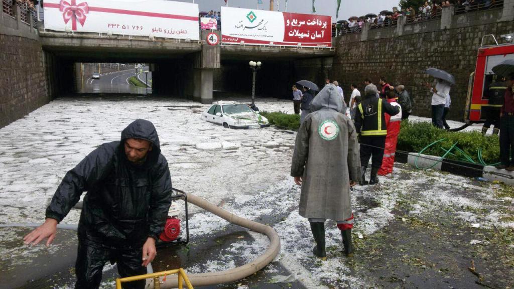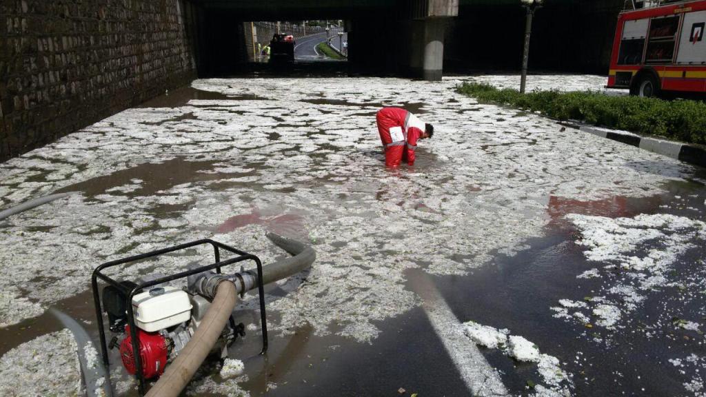 بدنبال بارش شدید باران و تگرگ در تبریز و جاری شدن سیلاب در خیابانها و زیر گذرها و معابر نجاتگران جمعیت هلال احمر وارد عملیات شدند