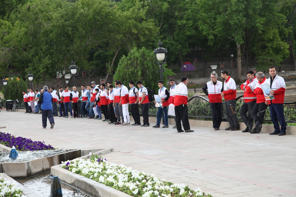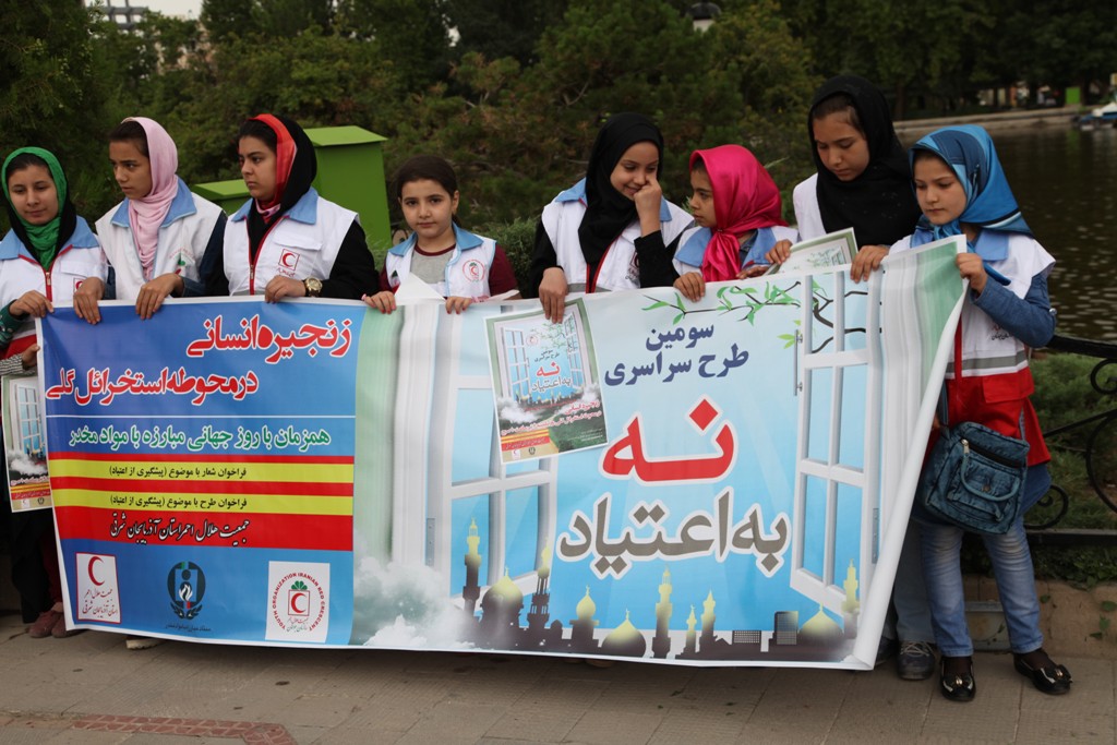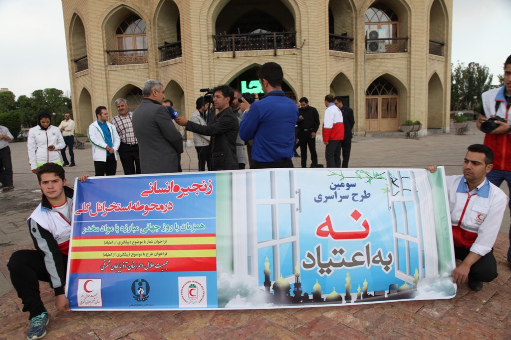 جوانان هلال احمر با تشکیل زنجیره انسانی با شعار نه به اعتیاد در صدد فرهنگ سازی و بسط دادن آن به عموم جوانان هستند.