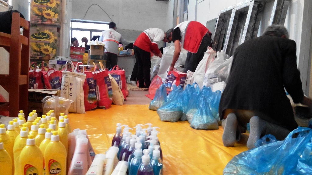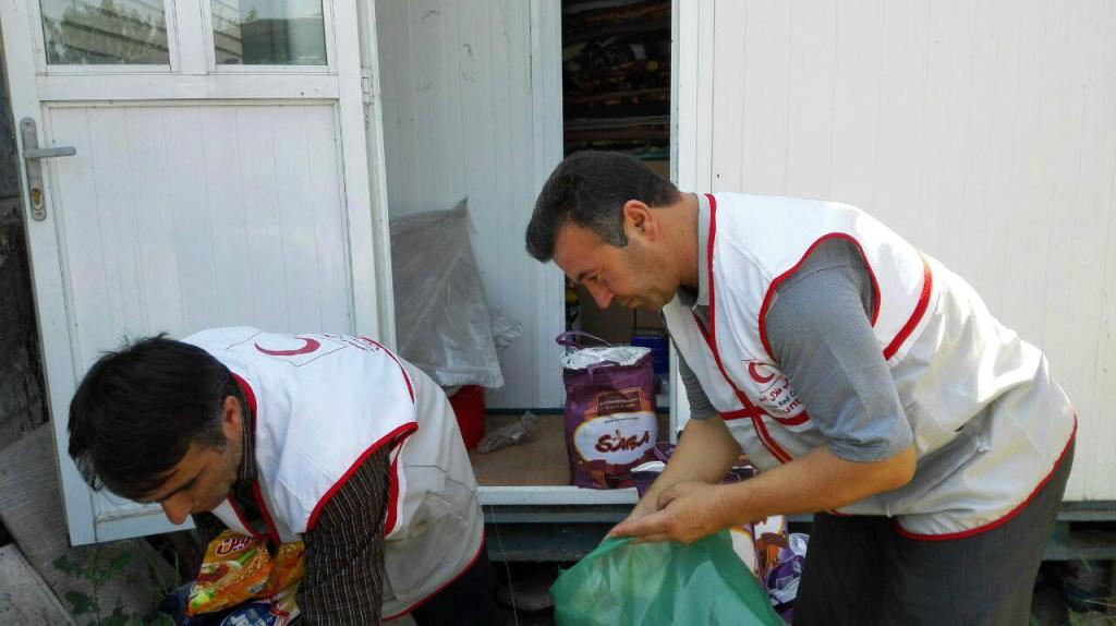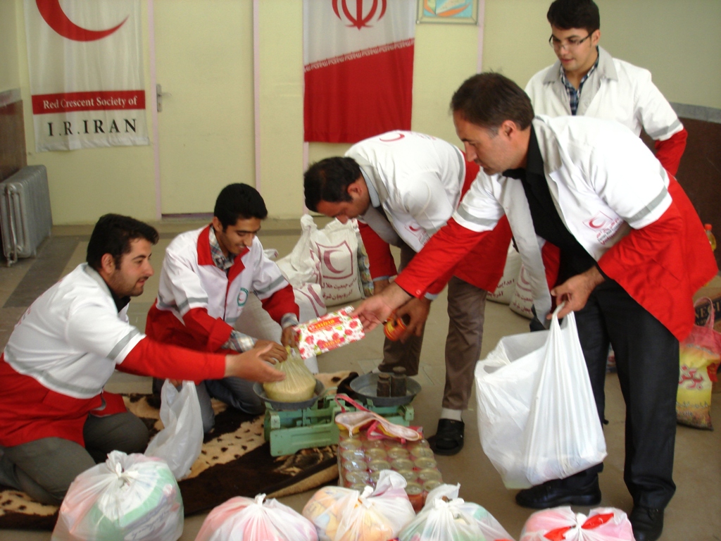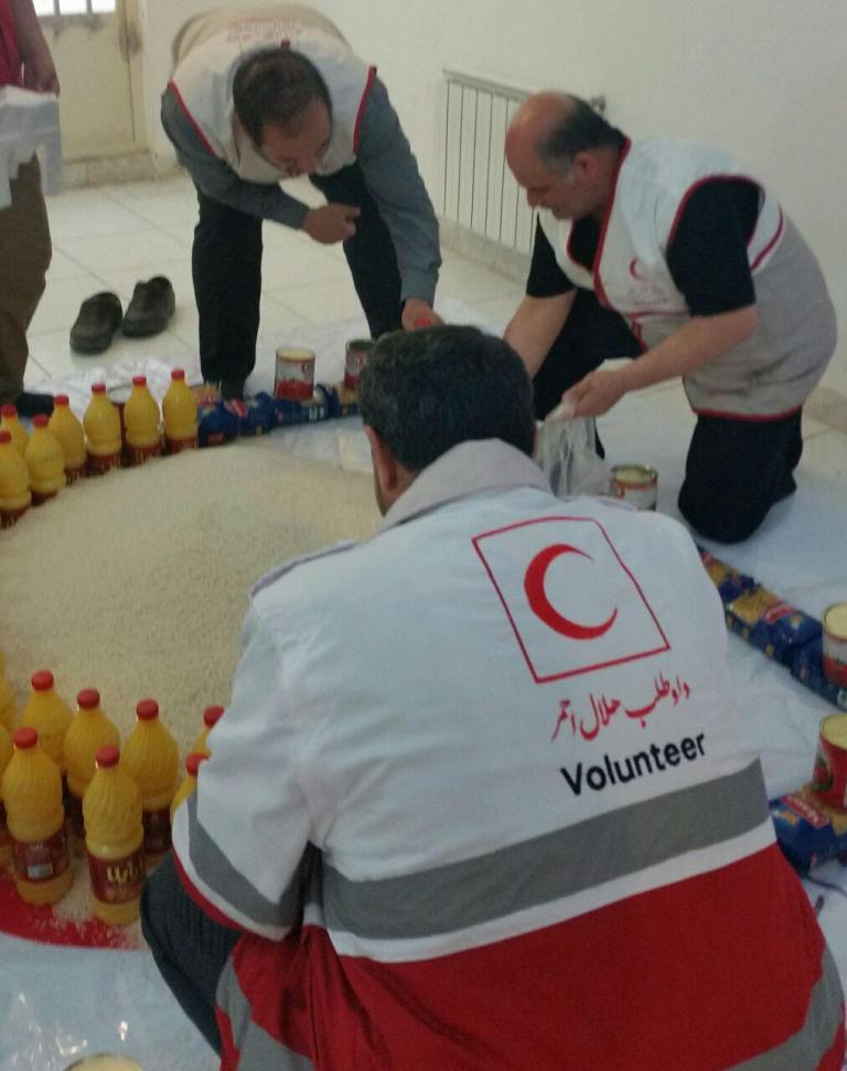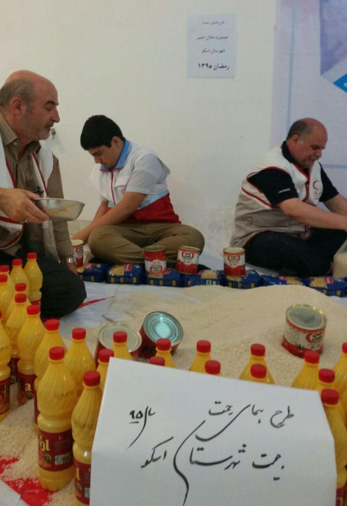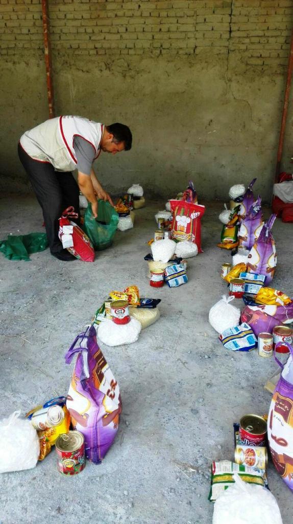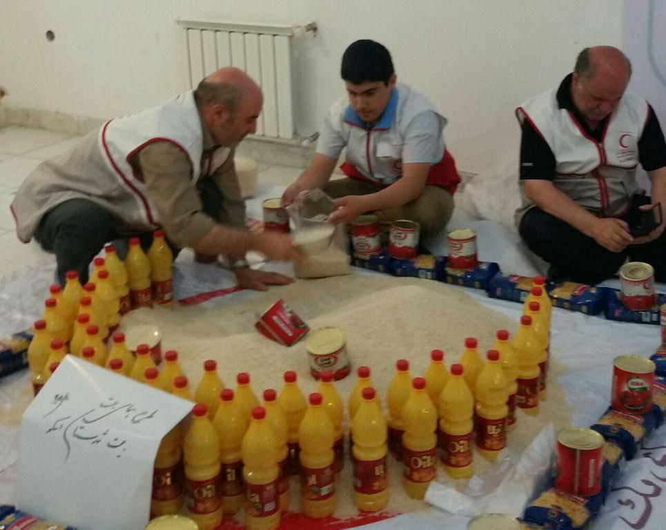 داوطلبان جمعیت هلال احمر خامنه با کمک خیرین و نیکوکاران این شهر اقدام به جمع آوری کمکهای مردمی کرده و بعد از بسته بندی و ساماندهی در هر بسته " 10قلم مواد غذایی پر مصرف "در اختیار نیازمندان قرار دادند .