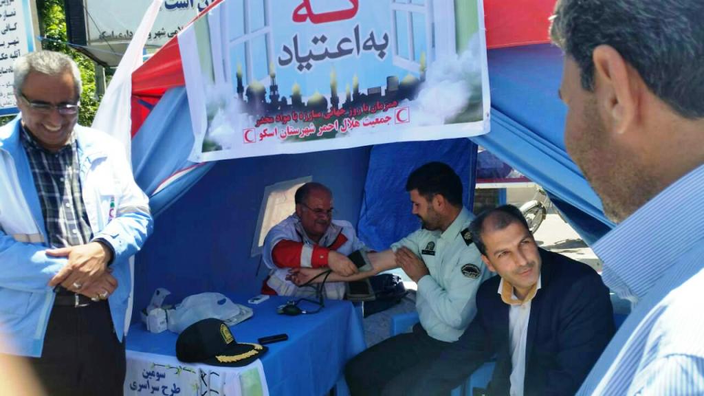 داوطلبان و اعضای  افتخاری جمعیت هلال احمر شهرستان اسکو با برپایی چادر در مرکز شهر اسکو نسبت به اندازه‌گیری فشار خون و نیز تست قند خون اقدام نمودند .این گزارش می افزاید:در این راستا صدها نفر از شهروندان اسکویی با حضور در چادرهای هلال احمر از میزان قند خون خود اطلاع یافتند و توصیه های لازم به افرادمراجعه کننده اعلام شد.