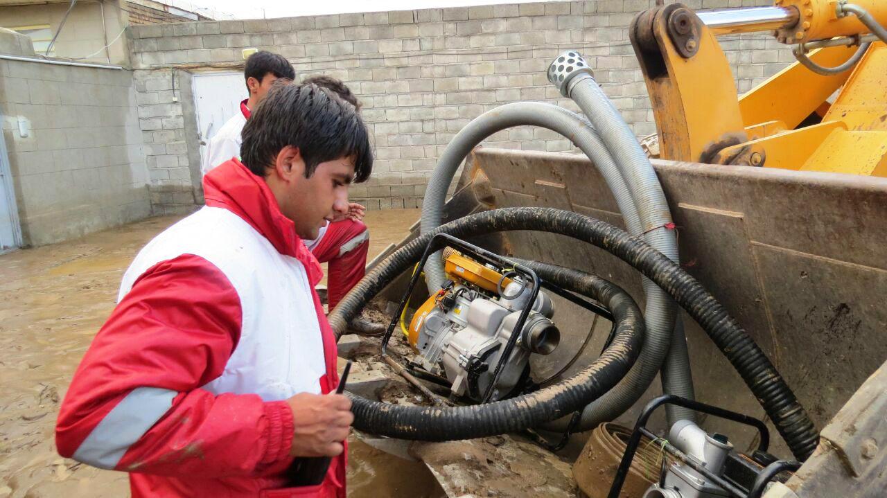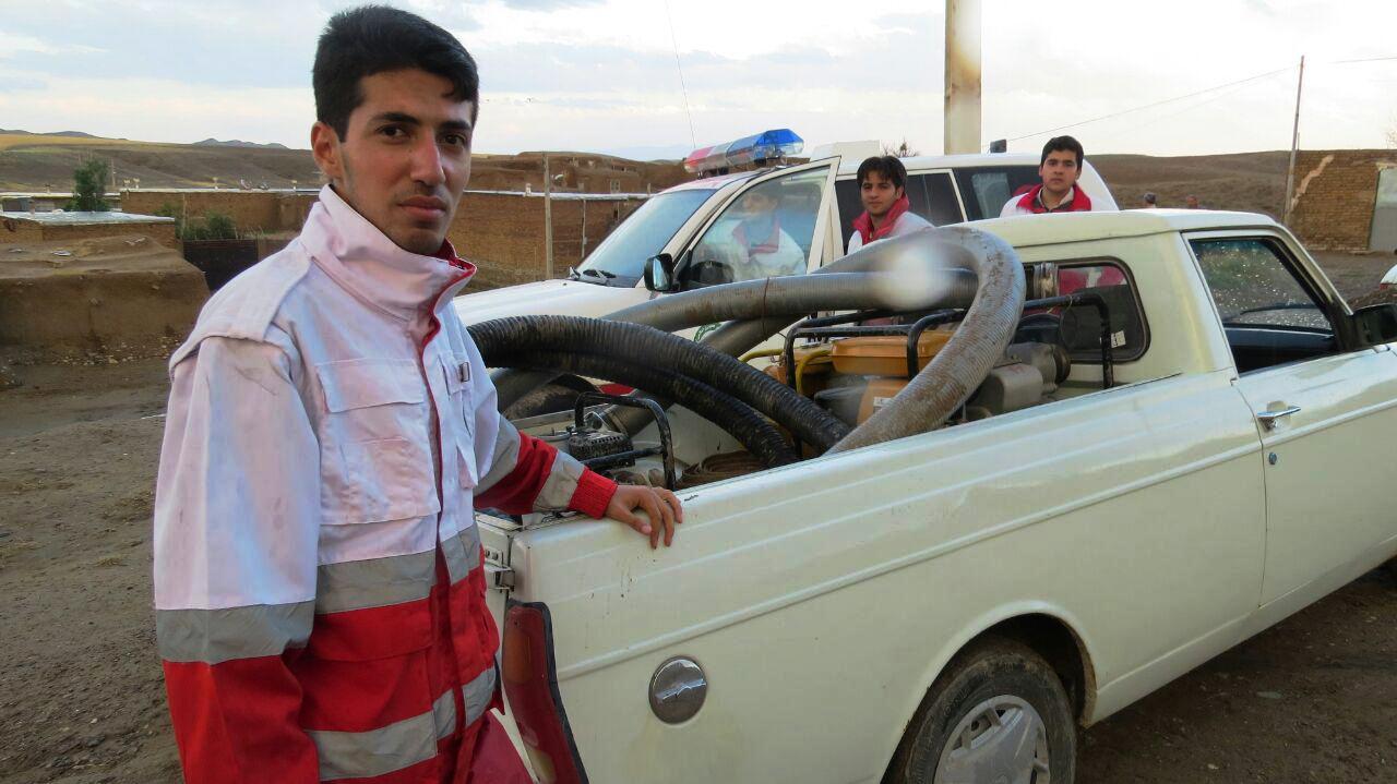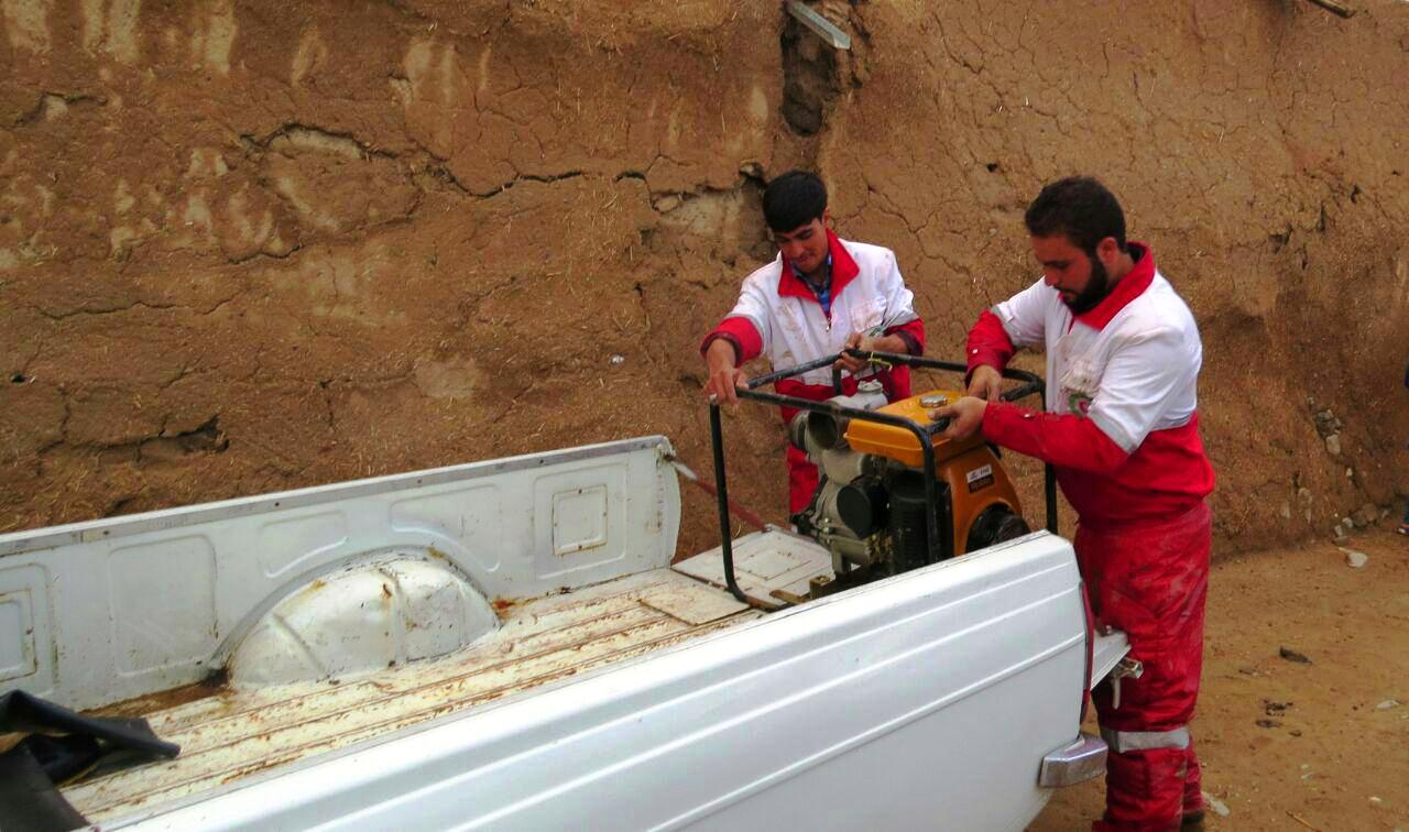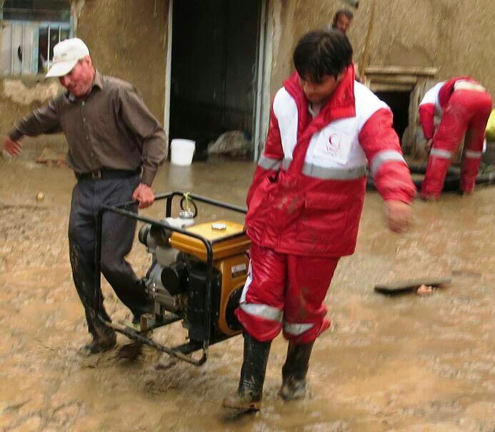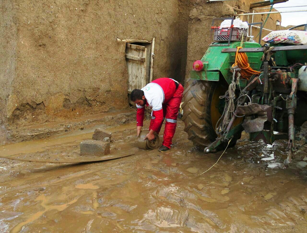 حضور تیمهای امدادی جمعیت هلال احمر در روستا و تخلیه سیلاب از منازل