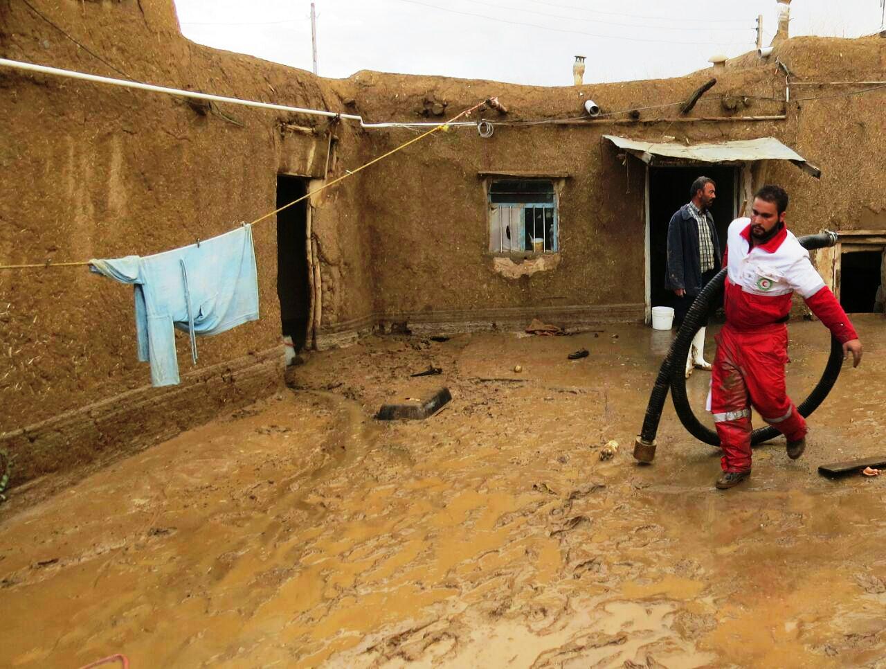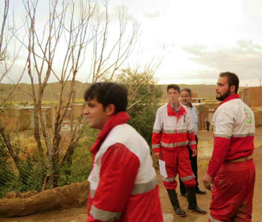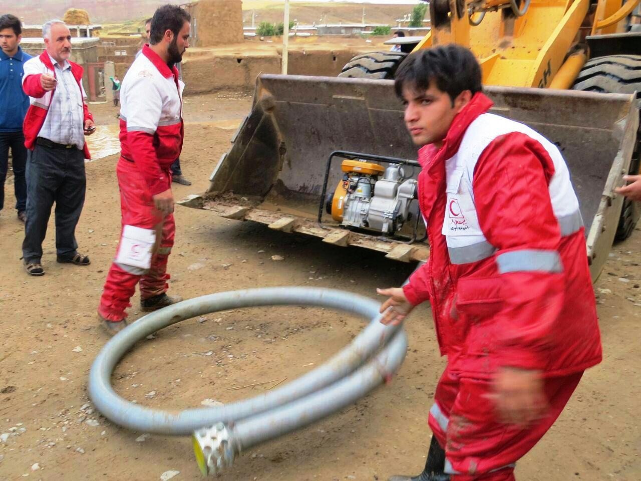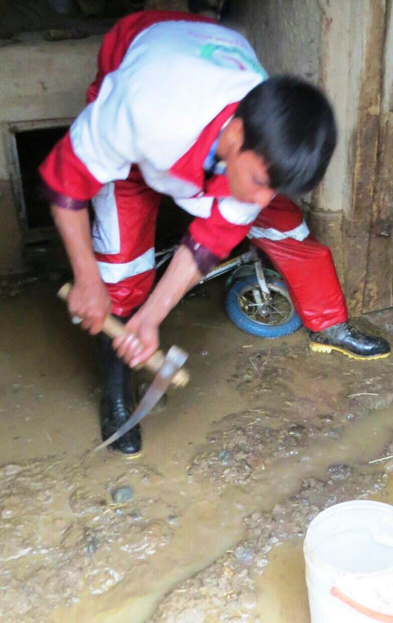 حضور تیمهای امدادی جمعیت هلال احمر در روستا و تخلیه سیلاب از منازل