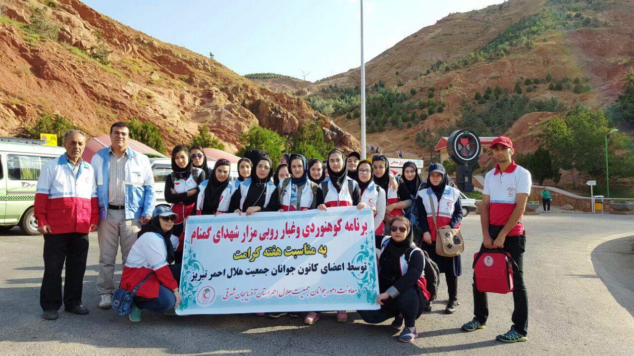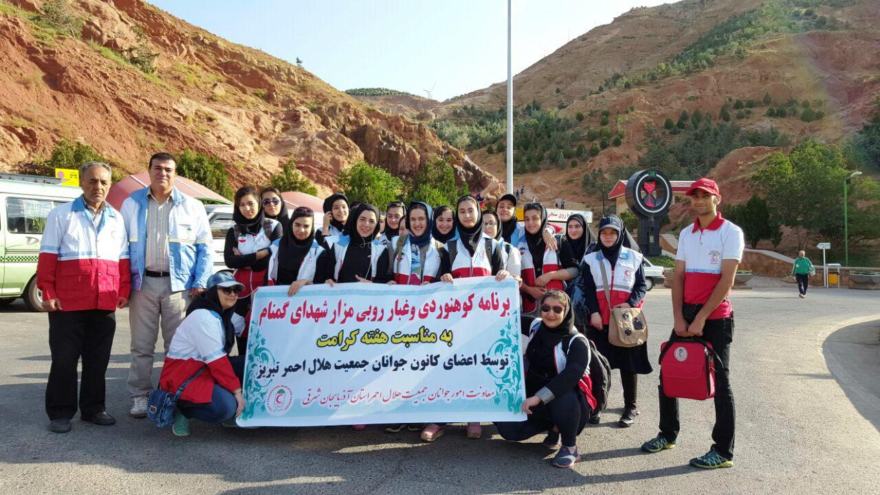 به گزارش روابط عمومی جمعیت هلال احمر استان آذربایجان شرقی ، بمناسبت ولادت حضرت معصومه (س)وروز دختر و آغاز هفته کرامت ،جمعی از اعضای خواهران و برادران معاونت امور جوانان جمعیت هلال احمر استان آذربایجان شرقی اقدام به کوهپیمایی در ارتفاعات عون بن علی تبریز کردند .