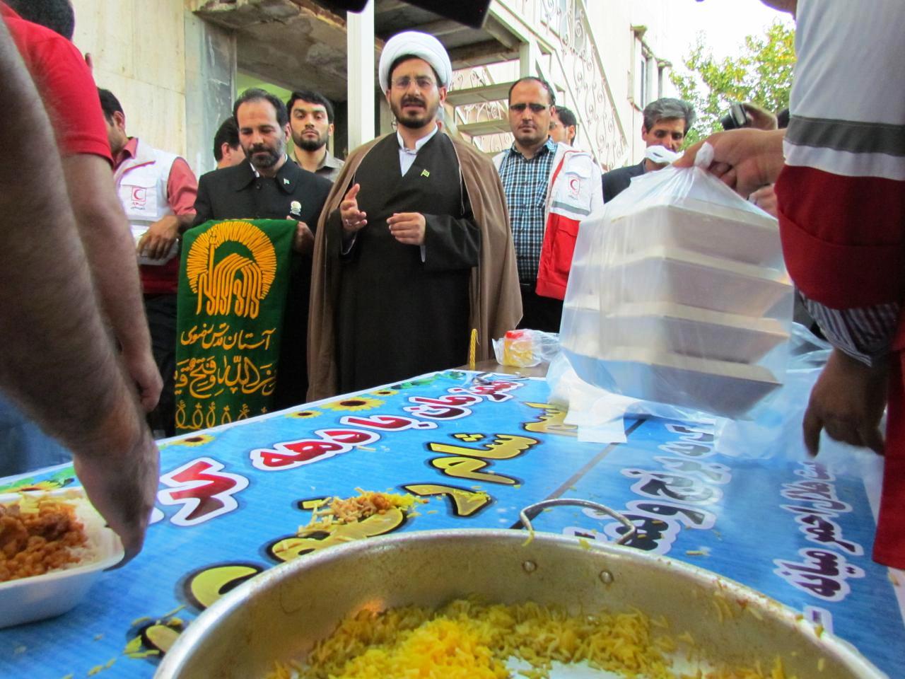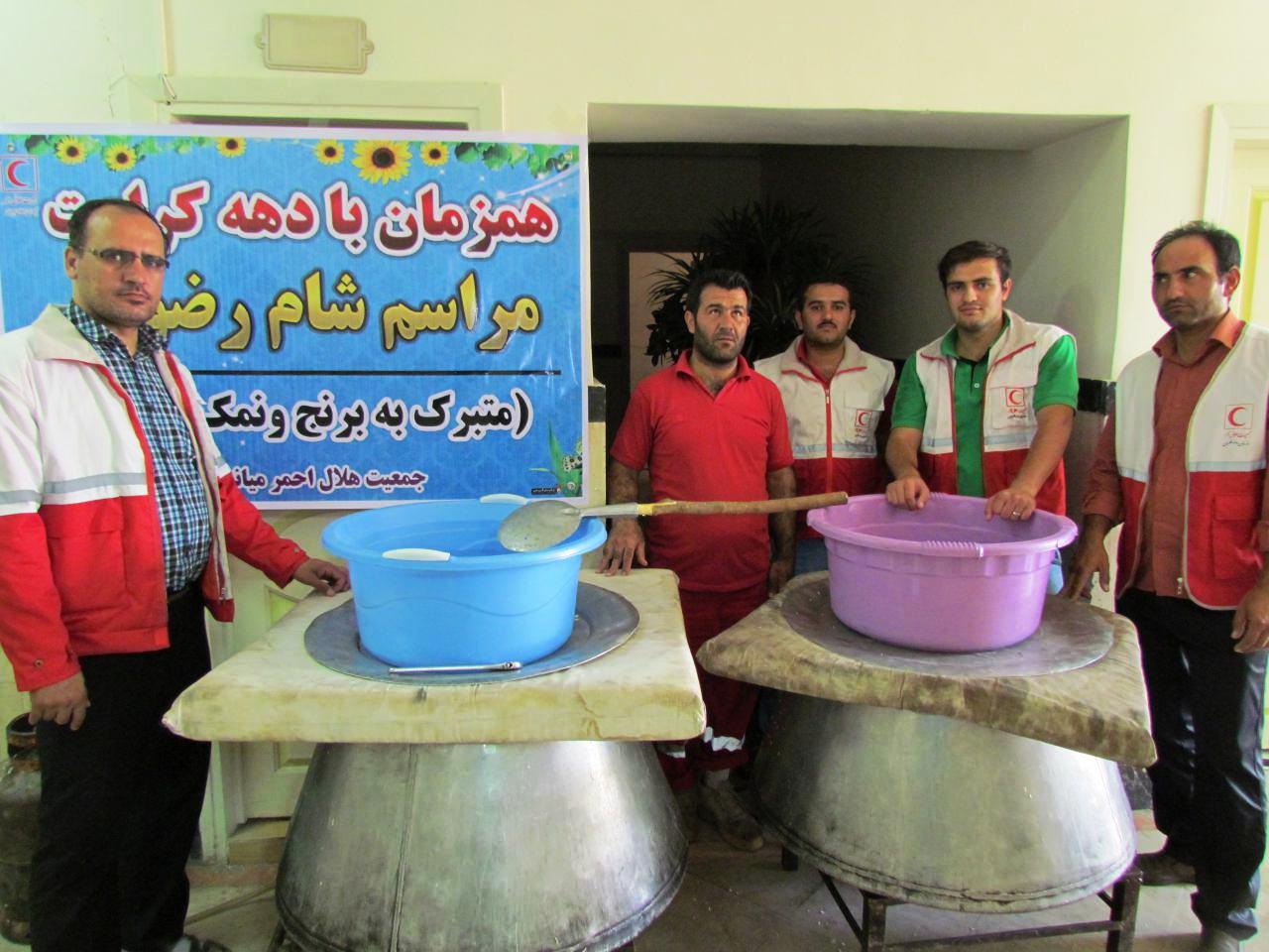 داوطلبان جمعیت هلال احمرمیانه به مناسبت دهه کرامت وهمچنین به میمنت ورود کاروان رضوی به شهرستان میانه تصمیم گرفتند بین هزار نفراز عاشقان اهل بیت علیهم السلام شام متبرک شده به برنج و نمک رضوی تهیه و توزیع کننند.