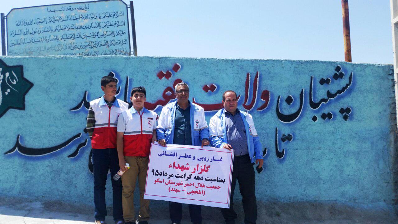 هم چنین  قبل از این دیدار اعضای سازمان جوانان هلال احمر شهرستان اسکو با حضور در گلزار شهدای شهر  اسکو نسبت به غبار روبی و عطر افشانی مزار شهدا اقدام و با آرمانهای شهیدان تجدید بیعت نمودند . گفتنی است اعضای کانون های دانشجویی و دانش آموزی با حضور در امامزاده سید حسین بن  سید عبدالغفار    اسکو نسبت به غبار روبی این بقاع متبرک و امامزاده عزیز اقدام نمودند.