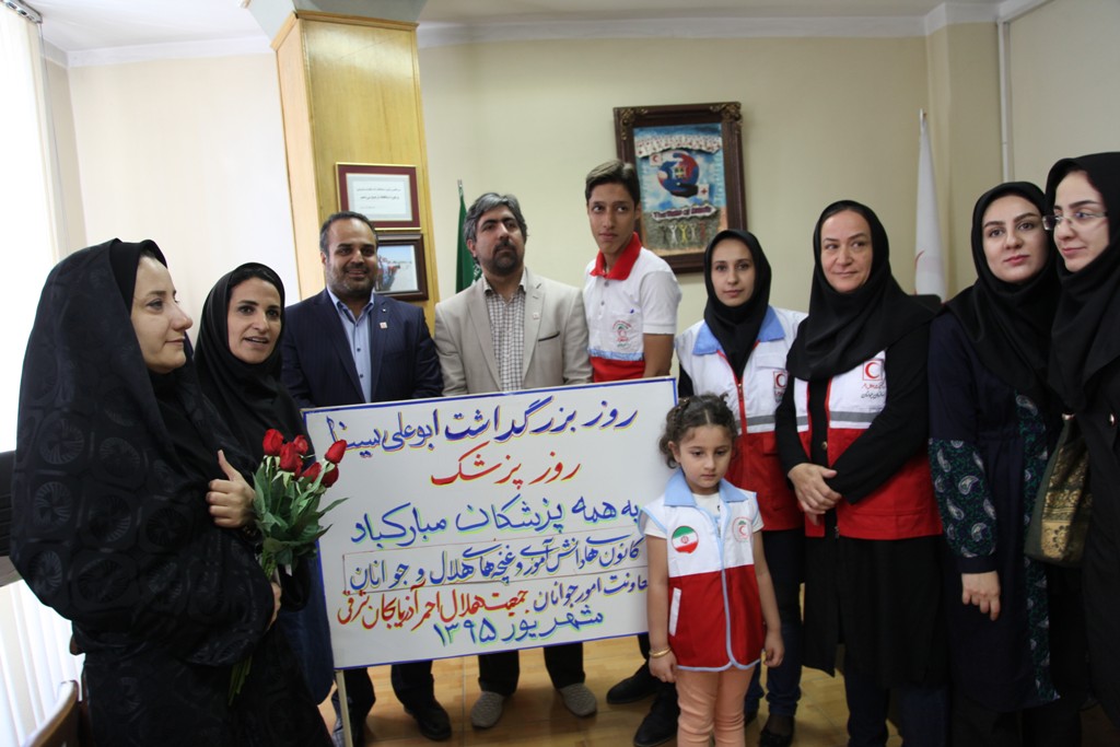 به گزارش روابط عمومی جمعیت هلال احمر استان آذربایجان شرقی، بمناسبت اول شهریور روز بزرگداشت ابوعلی سینا و روز پزشک جمعی از اعضای کانونهای غنچه های هلال ، دانش آموزی و جوانان معاونت امور جوانان جمعیت هلال احمر استان با حضور در مراکز درمانی جمعیت هلال احمر استان آذربایجان شرقسی در تبریز ،روز پزشک را به پزشکان تبریک گفته و با اهداء شاخه گل و لو ح تقدیر از زحمات پزشکان عزیز تجلیل بعمل آوردند