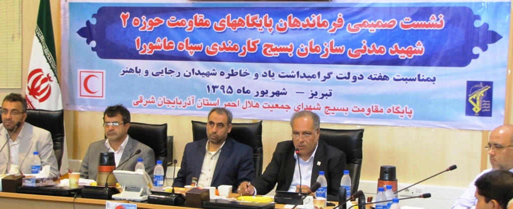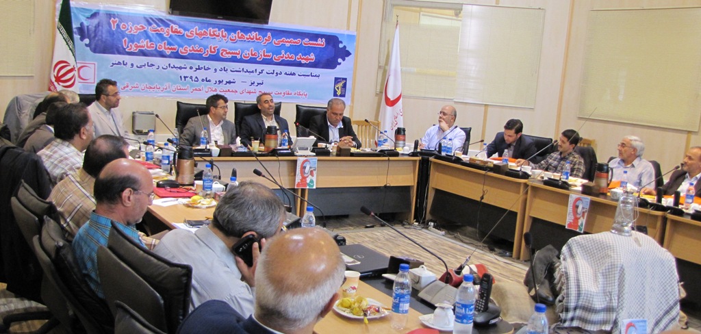 به گزارش روابط عمومی جمعیت هلال احمر استان آذربایجان شرقی، در این نشست سعید کنعانی مدیر عامل جمعیت هلال احمر استان آذربایجان شرقی با گرامیداشت یاد و خاطره شهیدان رجایی و باهنر و شهدای دولت، هفته دولت را تبریک گفته و مطالبی پیرامون بسیج ارائه دادند .بنابراین گزارش ، در ادامه این نشست فرمانده حوزه 2 بسیج ادارات و فرماندهان پایگاههای مقاومت بسیج حوزه 2 شهید مدنی ادارات کل استان به بحث و تبادل نظر در خصوص فعالیت های بسیج پرداختند .در این مراسم از رحیم علمی فرمانده سابق پایگاه مقاومت بسیج شهدای هلال احمر تجلیل و سعید کنعانی بعنوان فرمانده جدید پایگاه مقاومت بسیج شهدای هلال احمر معرفی گردید .در حاشیه این نشست، از حاضرین تست فشار و قند خون بعمل آمد.