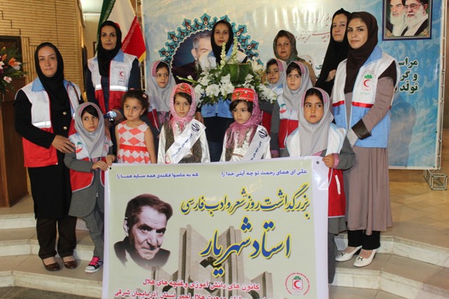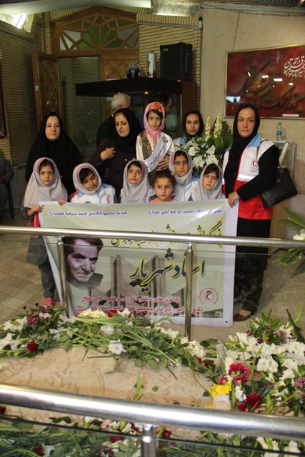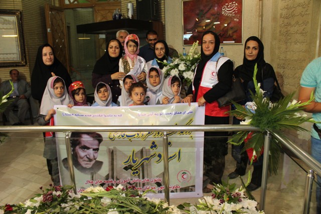 به گزارش روابط عمومی جمعیت هلال احمر استان آذربایجان شرقی ، بمناسبت 27 شهریورروز ملی شعر و ادب فارسی و روز بزرگداشت استاد شهریار ،جمعی از اعضای  کانونها ی دانش آموزی و غنچه های هلال معاونت امور جوانان جمعیت هلال احمر استان آذربایجان شرقی ، با حضور در مقبره الشعرای تبریز بر سر مزار شهریار شعر و ادب، با قرائت فاتحه به روح بلند شهریار ادای احترام کردند .