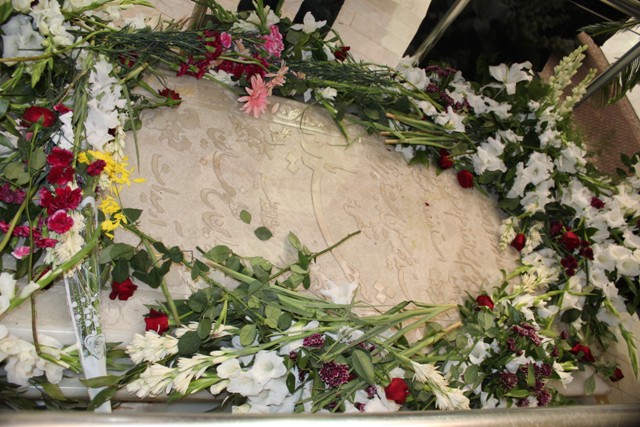 گلباران مزار استاد سید محمدحسین شهریار در مقبره الشعرای تبریز توسط کانونهای دانش اموزی و غنچه های هلال جوانان