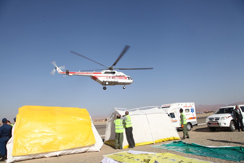 کنعانی ادامه داد :در این مانور هم که در فرودگاه تبریز برگزار شد تیم های امدادی جمعیت هلال احمر متشکل از تیم امداد هوایی و تیم های جستجو و نجات با بهره گیری از یک فروند بالگرد و 6 دستگاه آمبولانس امدادی به همراه 30 تن از مدیران عملیاتی و نجاتگران به محل برگزاری مانور سقوط فرضی هواپیما در فرودگاه تبریز اعزام و بعد از رها سازی مصدومان فرضی گرفتار در هواپیما اقدام به انتقال 3 تن از مصدومان توسط بالگرد جمعیت هلال احمر و 8 تن از مصدومان تو سط آمبولانسهای امدادی هلال احمر به مراکز درمانی نمودند .