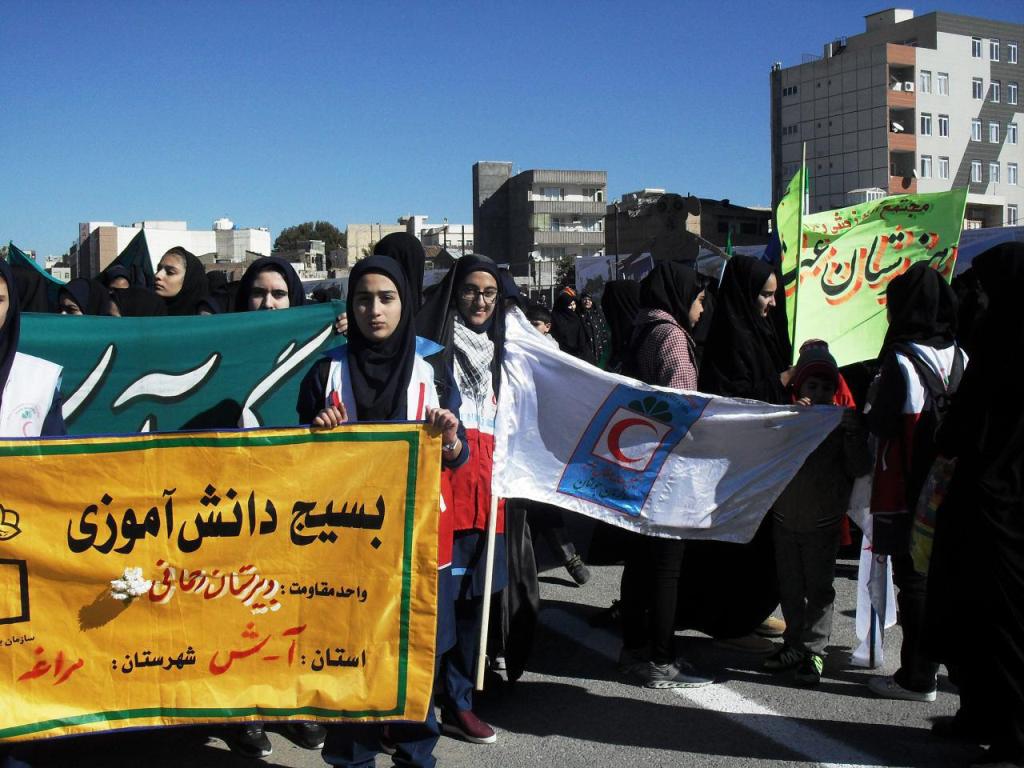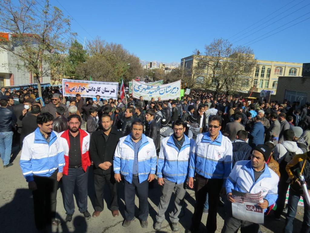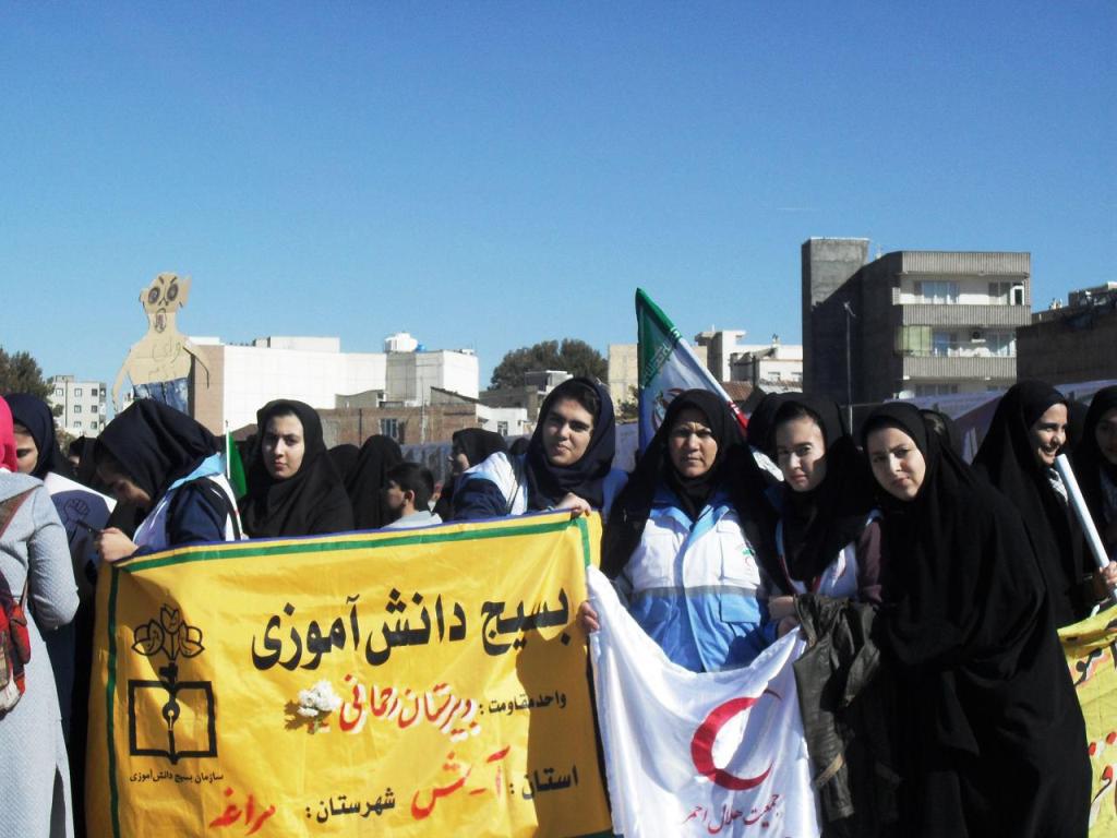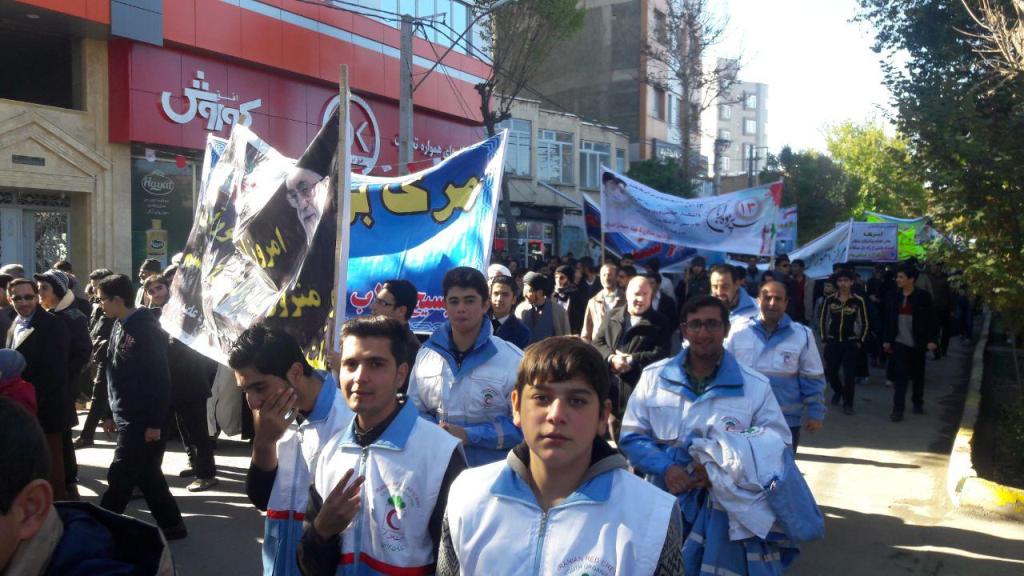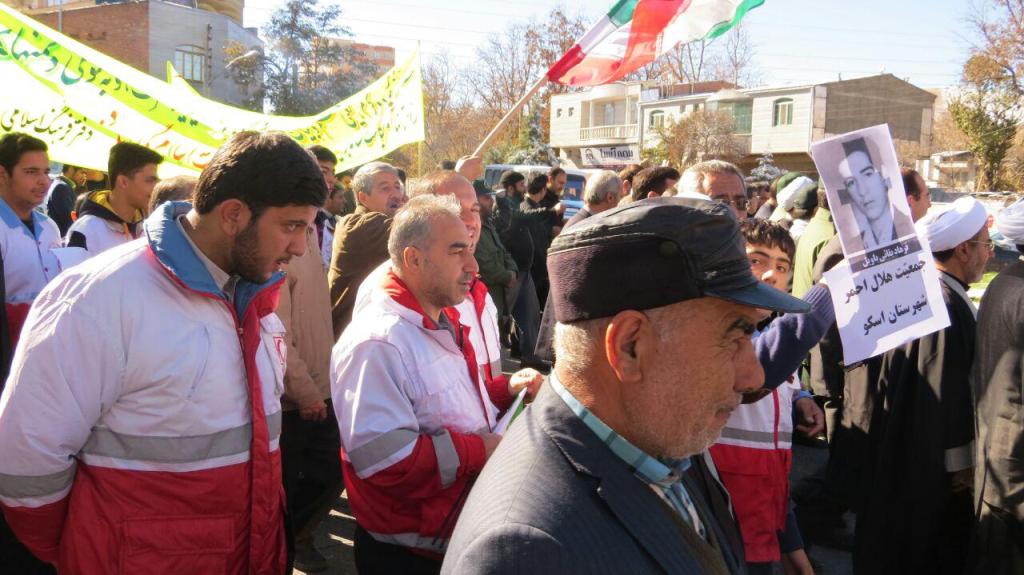 داوطلبان و نجاتگران و اعضای جوانان بهمراه کارکنان جمعیت هلال احمر استان اذربایجان شرقی در سرتاسر شهرهای تابعه در تجمعات و راهپیمایی های این روز شرکت ویاد ونام شهدای دانش آموز و انقلابی و روز ملی مبارزه با استکبار جهانی را گرامی داشتند