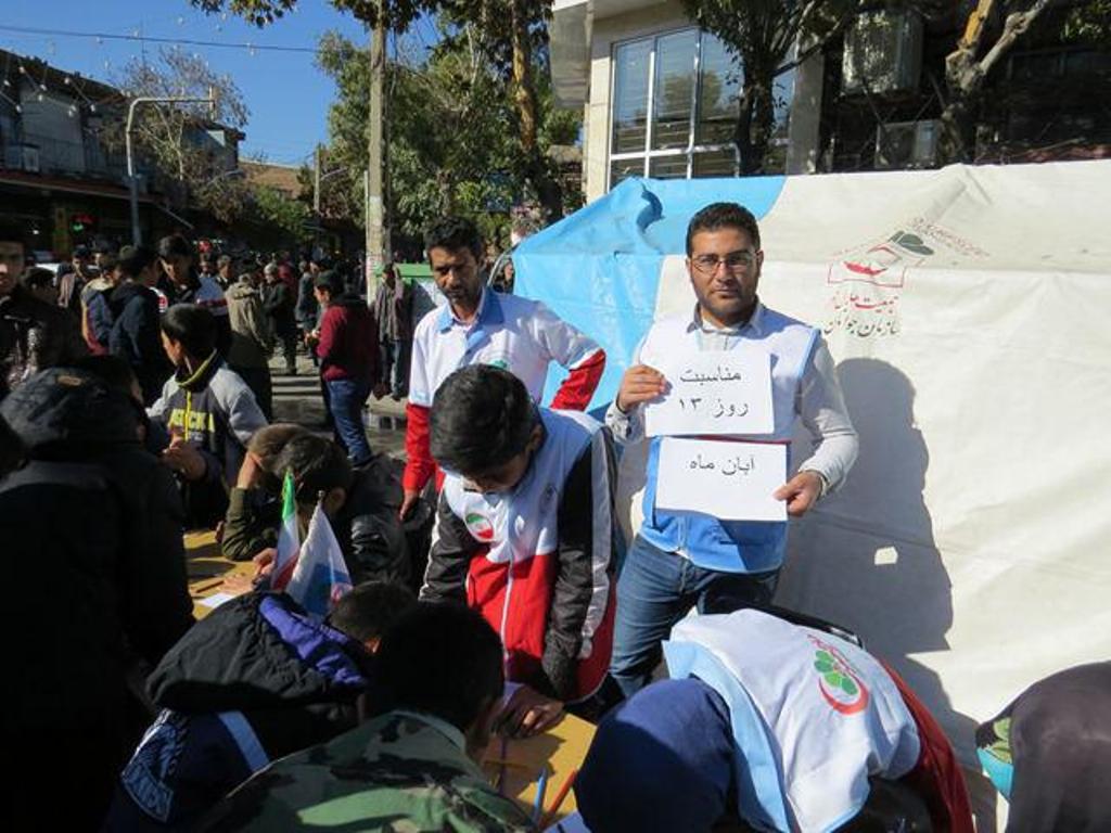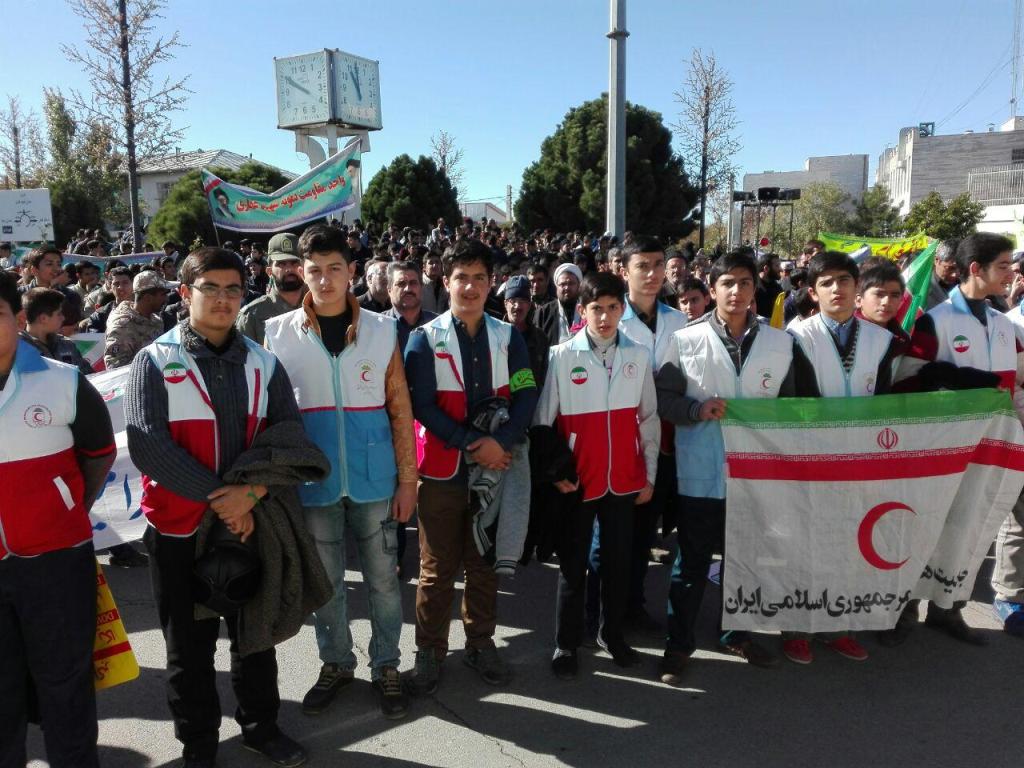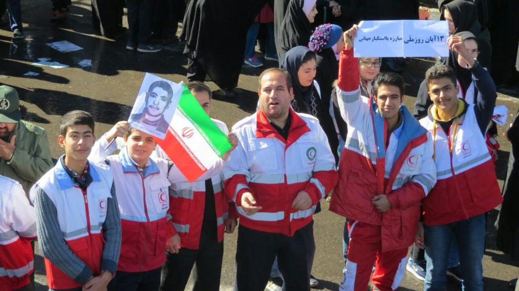 حضور پرشور اعضای کانونهای دانش آموزی و کارکنان و نجاتگران هلال احمر آذربایجان شرقی در راهپیمایی 13 آبان / پشتیبانی امدادی مراسم / برپایی نمایشگاه
