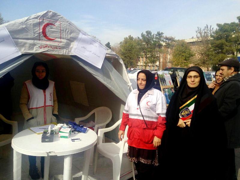 به گزارش روابط عمومی جمعیت هلال احمر استان آذربایجان شرقی ، روز پنجشنبه 20آبان همزمان بابرگزاری یادواره شهدای بهداری رزمی لشکر31عاشورادرتالاروحدت دانشگاه تبریز اعضای داوطلب معاونت داوطلبان بااستقرارچادرهای سلامت در محوطه تالاروحدت اقدام به ارایه خدمات رایگان تست فشارخون وتست قند خون به مهمانان وشرکت کنندگان دریادواره شهدانمودند.
