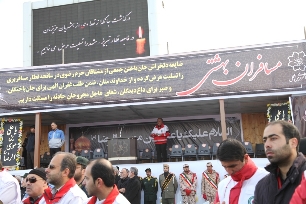 سعید کنعانی مدیر عامل جمعیت هلال احمر استان آذربایجان شرقی ، در حاشیه این مراسم در گفتگو با شبکه سهند با تسلیت شهادت حضرت امام رضا (ع) و گرامیداشت یاد و خاطره جانباختگان حادثه قطار تبریز -مشهد و تسلیت به خانواده های داغدار گفت : بمحض دریافت خبر حادثه قطار تبریز -مشهد علاوه بر حضور در جلسات ستاد مدیریت بحران استانداری از طریق مرکز کنترل و هماهنگی عملیات های امدادی EOC جمعیت هلال احمر استان با هلال احمر استان سمنان محل وقوع حادثه ارتباط برقرار کرده و نسبت به دریافت اطلاعات لازم اقدام نمودیم .