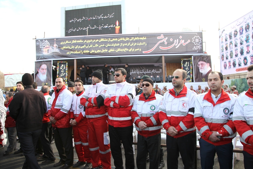 شایان ذکر است بیش از80 تن از کارکنان و نجاتگران و جوانان و داوطلبان جمعیت هلال احمر استان در مراسم تشییع شرکت کرده و تیم های امدادی و داوطلبان هلال احمر با برپایی چادر و بهره گیری از6 دستگاه آمبولانس و خودرو امدادی نسبت به پشتیبانی امدادی مراسم تشییع اقدام کردند .