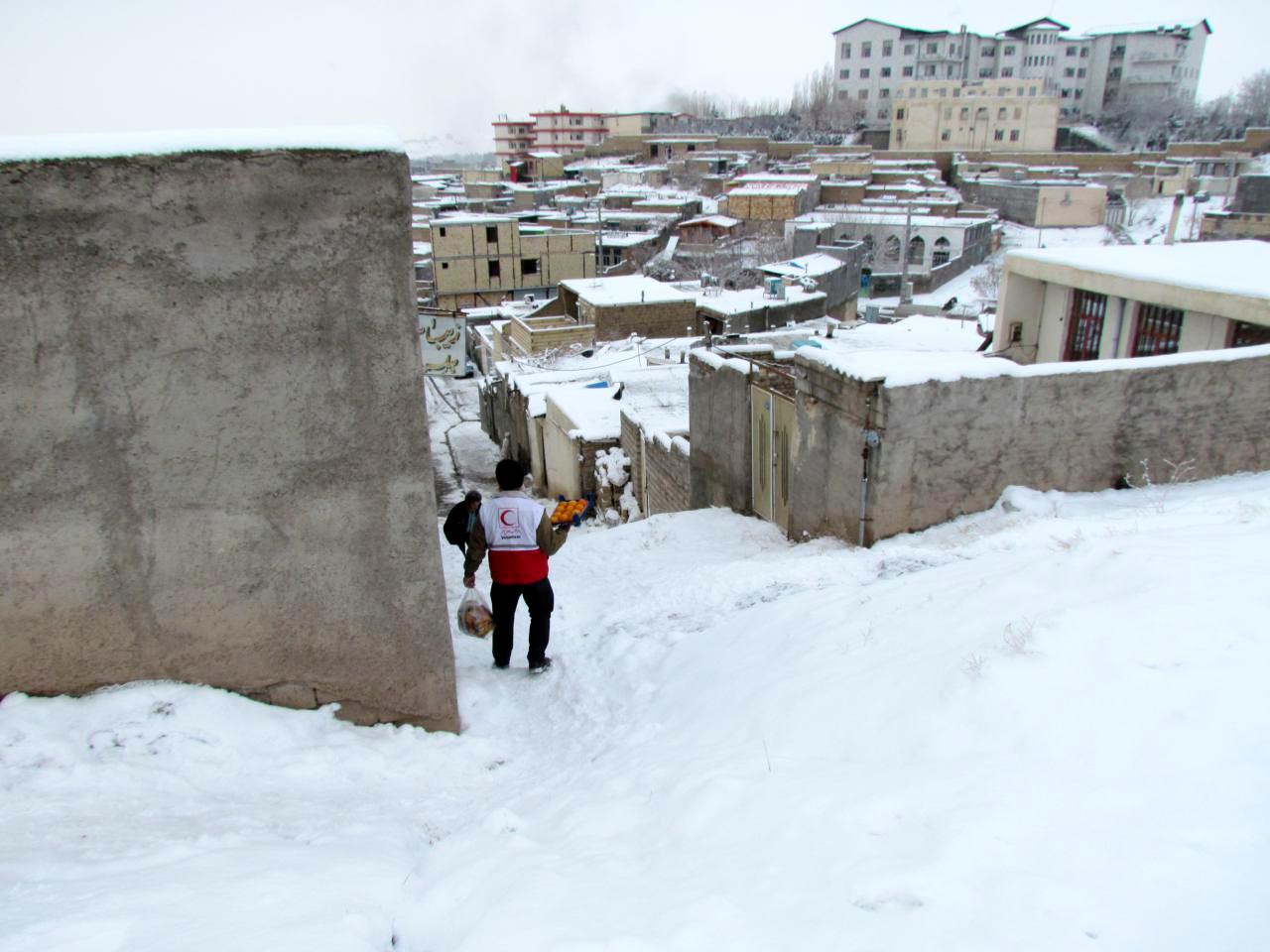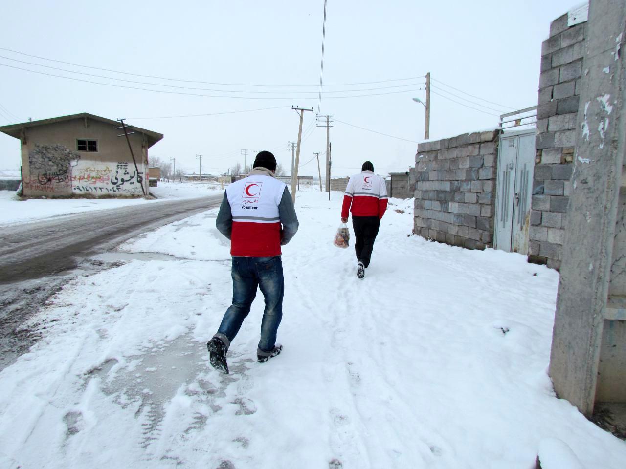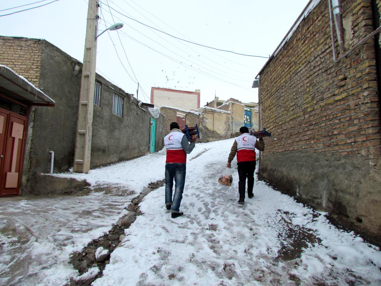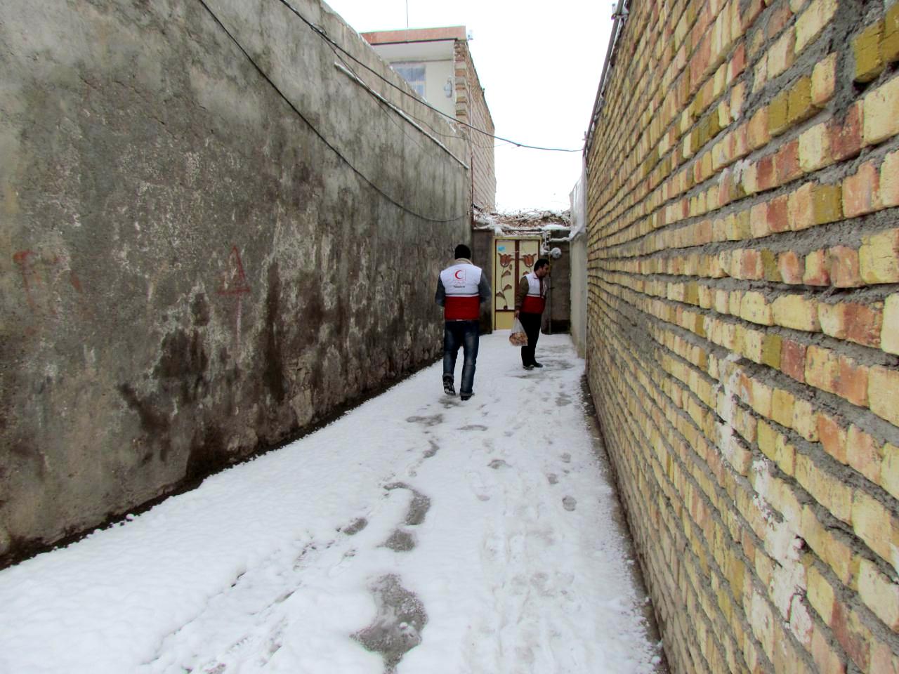 داوطلبان جمعیت هلال احمرشهرستان میانه در آستانه شب یلدا به تعدادی  از خانواده های محروم حاشیه شهر بسته های یلدایی اهدا کردند
