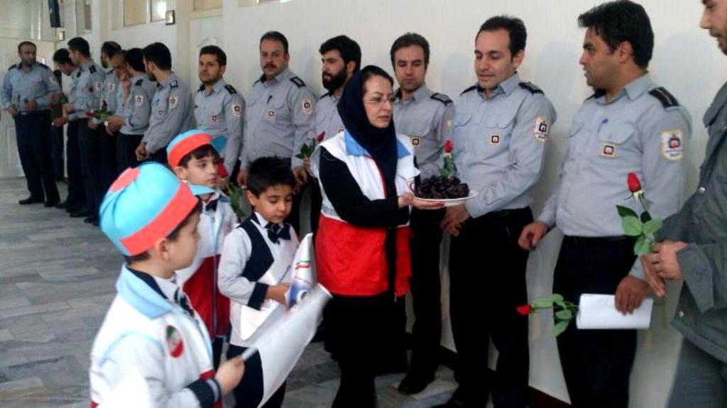 اعضای غنچه های هلال شهرستان تبریز با حضور در ایستگاه آتش نشانی خیابانی خاقانی ،حادثه ناگوار ساختمان پلاسکو شهادت جمعی از آتش نشانان فداکار را تسلیت گفتند.