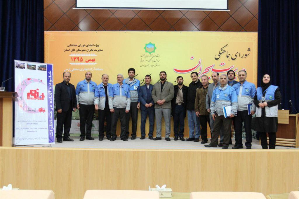 طرح ملی خادم "خانواده آماده در مخاطرات " برای شورای هماهنگی مدیریت بحران آذربایجانشرقی که در منطقه آزاد ارس با حضور معاون پیشگیری و پیش بینی سازمان مدیریت بحران کشور، مدیران کل پدافند غیر عامل ، مدیریت بحران ،فرمانداران و روسای کل ادارات شهرستانها برگزار شد توجیه گردید .