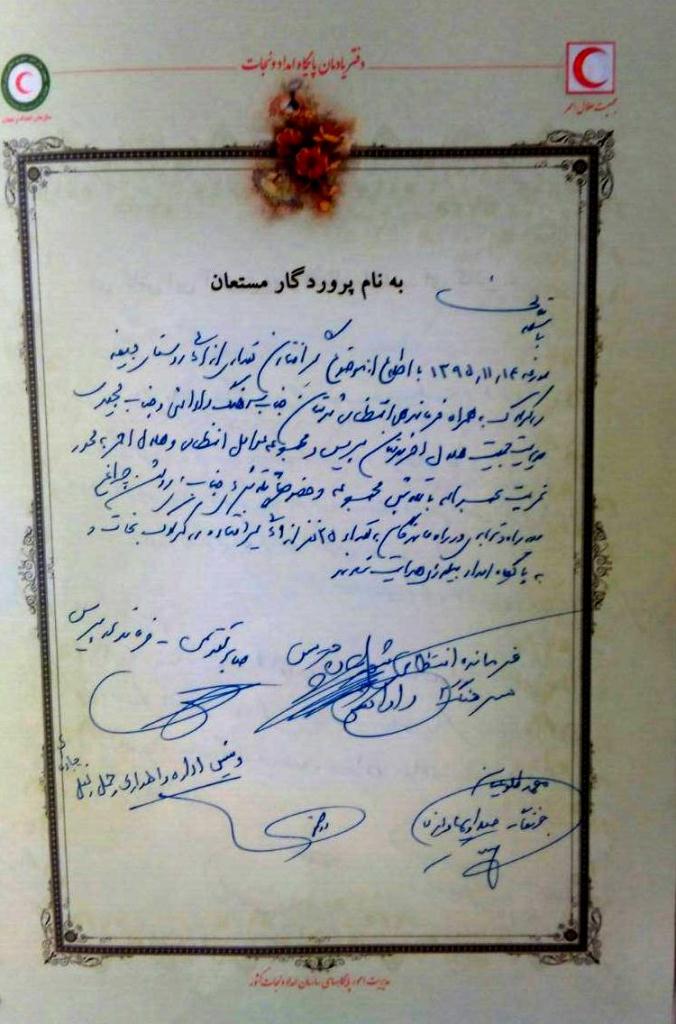 "درود و سلام بر شرف و غیرت مردان مرد در جمعیت هلال احمر هریس .تمامی آنچه دیشب حقیر دیدم عشق به همنوع ،وطندوستی و وظیفه شناسی بود بدین وسیله مراتب تقدیر و تشکر خودم را از ریاست جمعیت هلال احمر هریس جناب آقای مجیدی و همکارانشان خصوصا جناب آقای محسن زاده عزیز ابراز و از تلاش فرماندهی محترم انتظامی شهرستان و همکاران بزرگوار شان و ریاست محترم راه جناب آقای روشن چراغ و جناب آقای طلوعیان خبرنگار ساعی صدا و سیمای مرکز آذربایجان شرقی ودوستان بسیار عزیز شبکه بهداشت و درمان شهرستان اعلام داشته از خدای متعال بهروزی و موفقیت برایشان آرزو مندم "