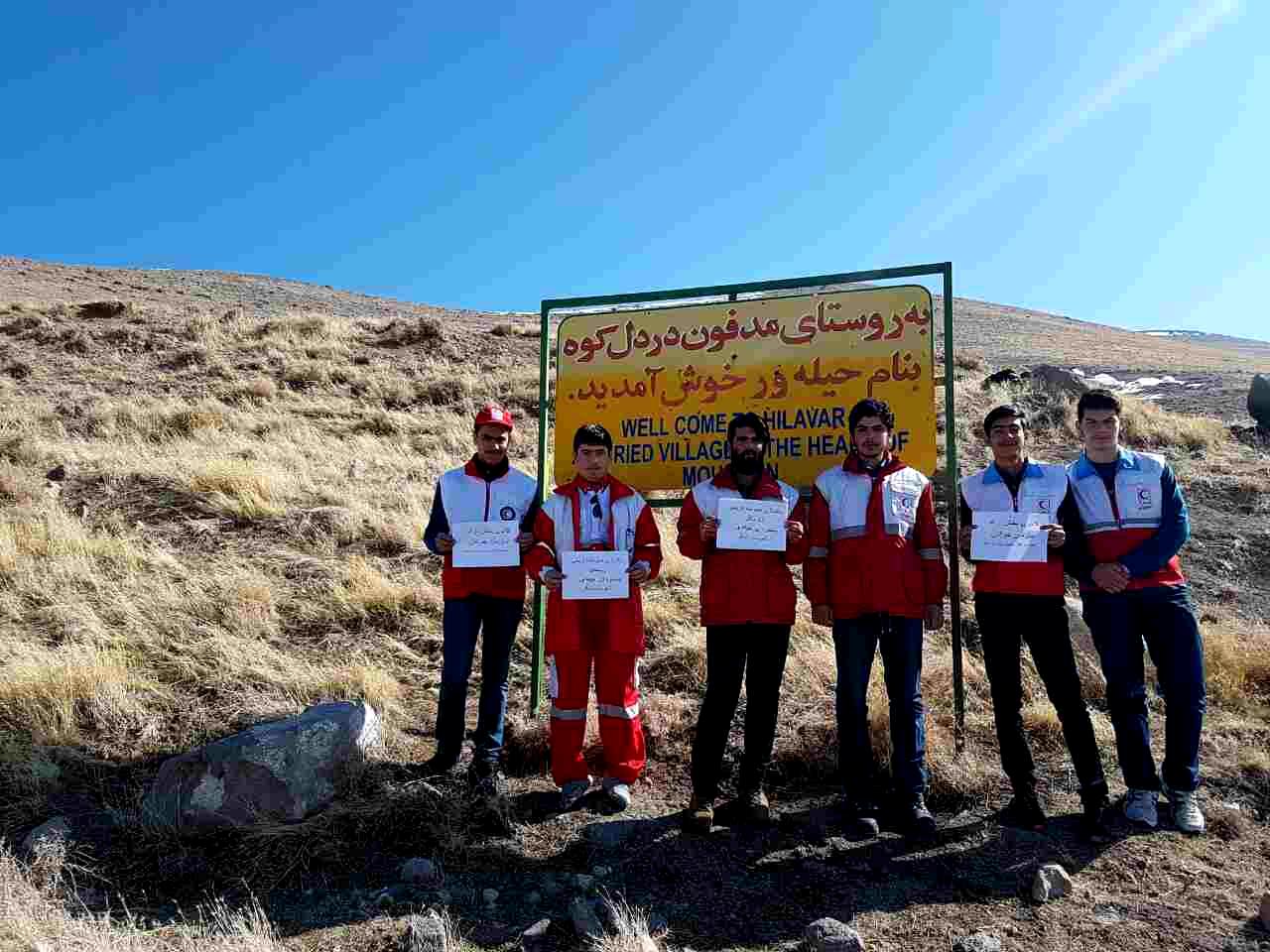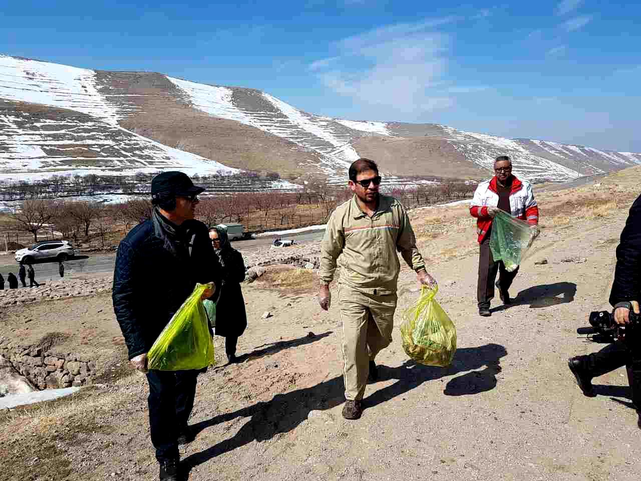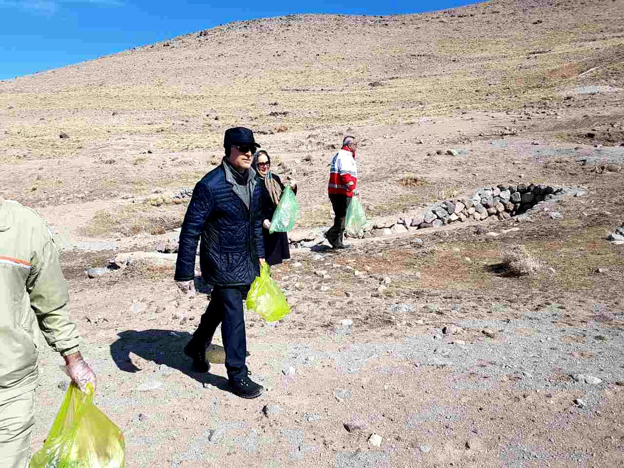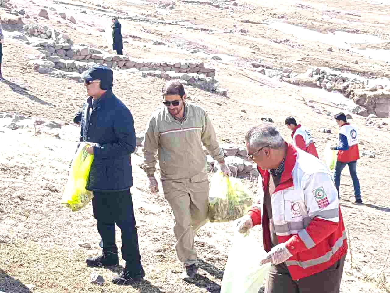 اعضای کانونهای دانشجویی و دانش آموزی هلال احمر اسکو اقدام به پاکسازی محوطه تاریخی روستای صخره ای حیله ور مدفون در خاک شهرستان اسکو از زباله های رها شده نمودند