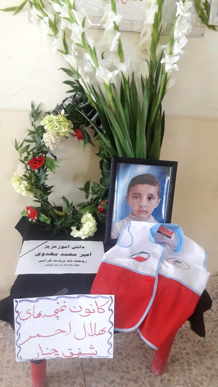 گفتنی است ؛ شادروان امیر محمد مهدوی عضو غنچه های هلال روستای چنار بود که در حادثه سیل مرگبار چنار بهمراه جمعی از اهالی روستا جان باخته است ، روحش شاد و مقامش اعلی علیین باد .