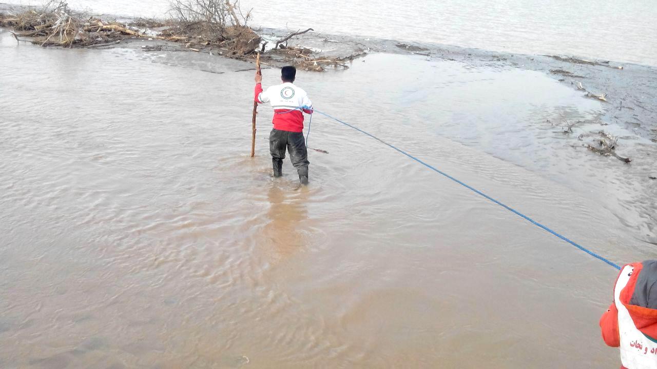 بیرون کشیدن جسد فرد غرق شده در سد قیصرق شهر مهربان در آذربایجان شرقی