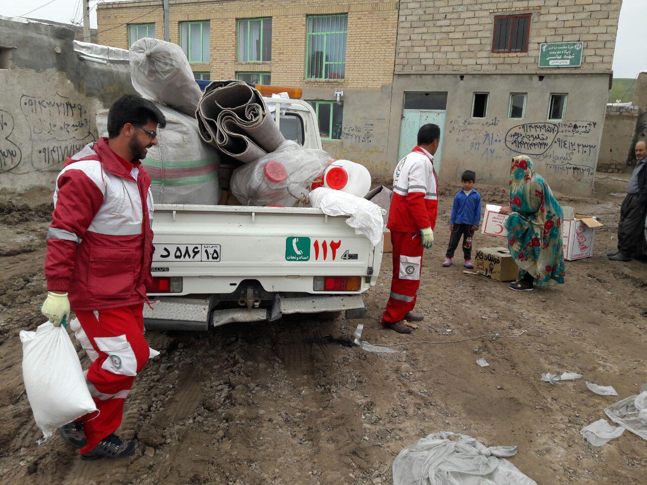 توزیع کمک های جمعیت هلال احمر به آسیب دیدگان سیل هشترود