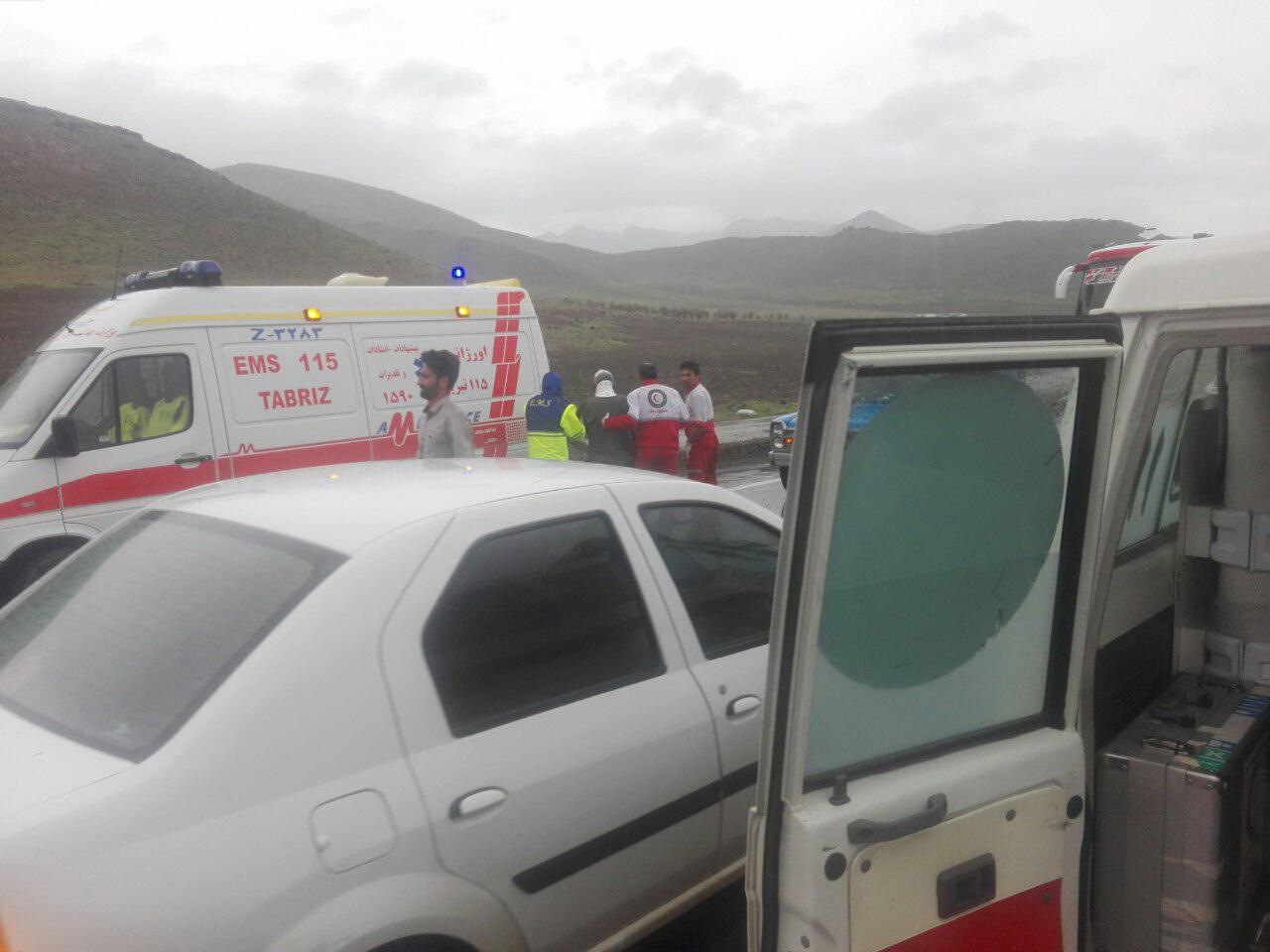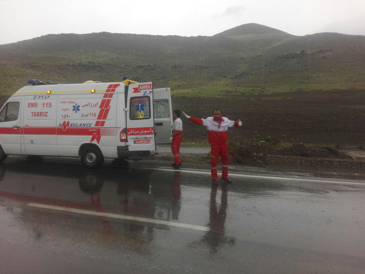 امدادرسانی به حادثه واژگونی دو دستگاه خودرو در محور تبریز -ارومیه